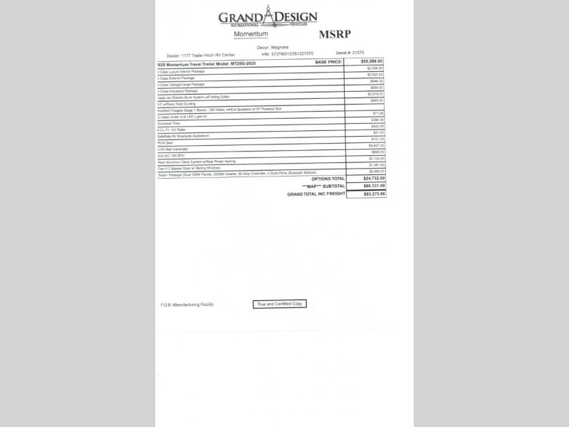 WE ARE FORCED TO ONLY LIST MSRP AS OUR PRICE ON CURRENT MODEL YEAR. WE SELL EVERY GRAND DESIGN MODEL FOR THE LOWEST PRICE ON THE WESTERN SIDE OF THE UNITED STATES. SIMPLY VISIT OUR WEBSITE AND THE MODEL YOU ARE INTERESTED IN AND CLICK “UNLOCK BEST PRICE”. WE WILL SEND THIS PRICE DIRECTLY TO YOU EMAIL. WE ARE NOT LOOKING TO ACQUIRE YOUR DATA! WE ARE FORCED REVEAL OUR LOW PRICE THIS WAY BECAUSE OF GRAND DESIGNS MINIMUM ADVERTISED PRICE POLICY. EVERY OTHER GRAND DESIGN DEALER DOES NOT WANT YOU TO SEE OUR PRICE. WE SELL NATIONWIDE AND WE SHIP! VISIT US A TRAILERHITCHRV.COM AND SAVE THOUSANDS!!