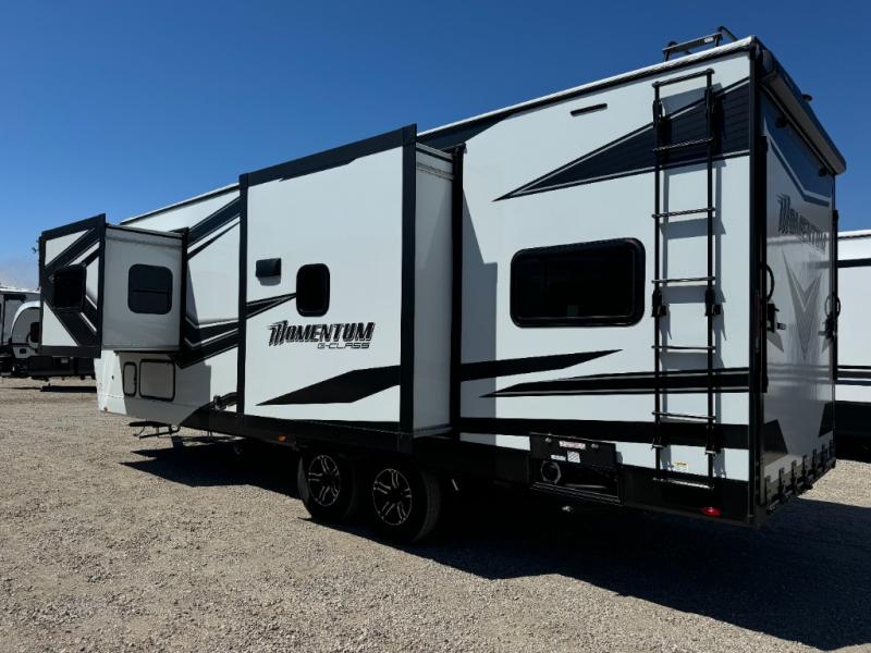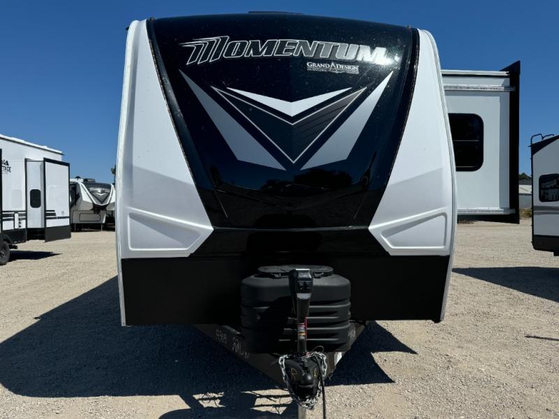 Are you looking for adventure and fun? The Momentum G-Class toy hauler by Grand Design will help you find it! You can explore during any season you choose with the Insulation Package that includes a heated and enclosed underbelly with suspended tanks, a high-capacity furnace, a moisture barrier floor enclosure, and cabinet-mounted heat ducts. Each model includes a fuel station with an interior and exterior gauge, a dovetail rear rend, and 2,500-LB tie-downs anchored into the chassis. Throughout the Momentum G-Class interior, you'll enjoy many comfortable features like large panoramic windows, a shower skylight, USB chargers in the bedroom, and residential cabinetry.