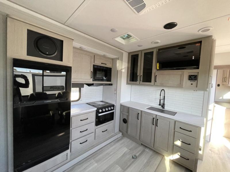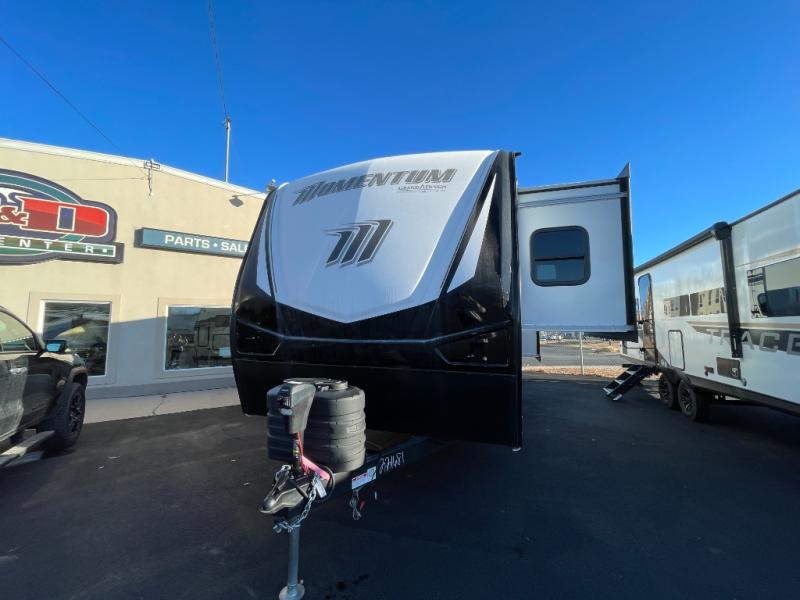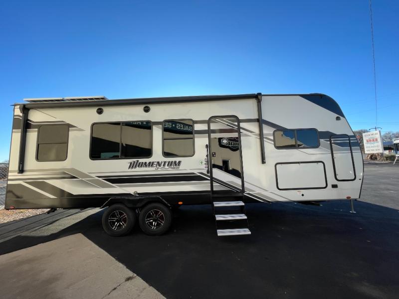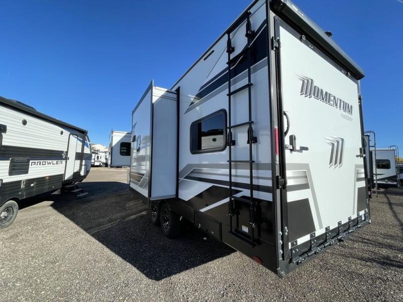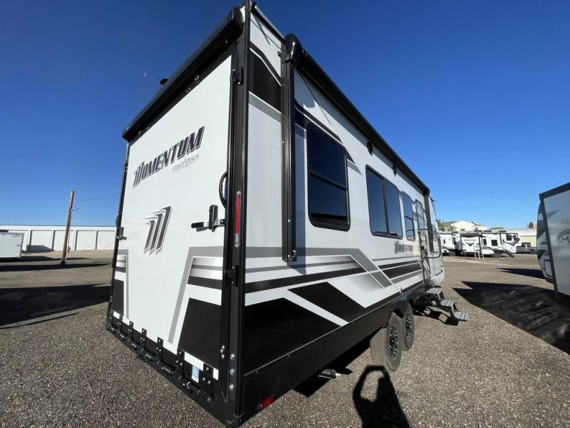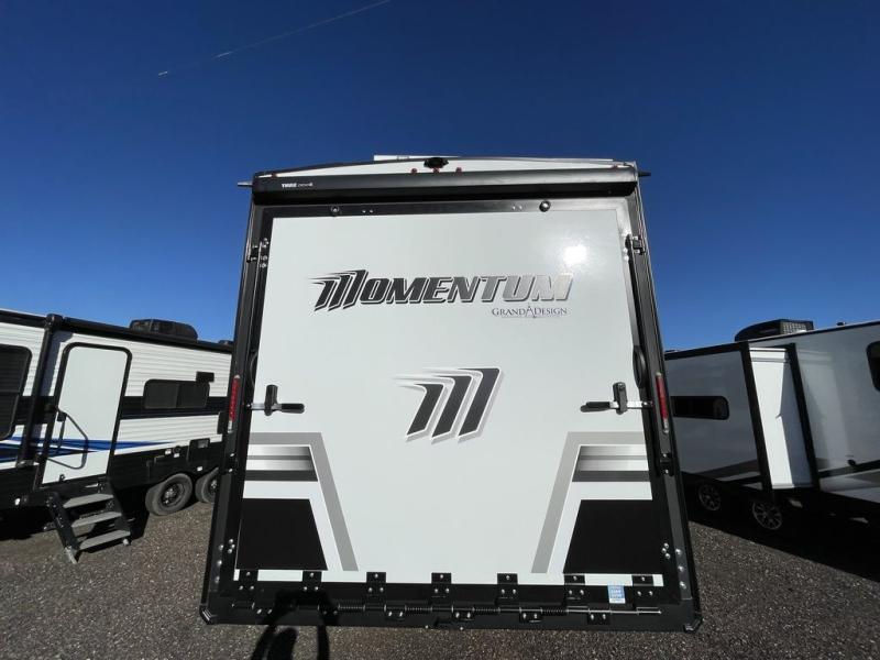 Are you looking for adventure and fun? The Momentum G-Class toy hauler by Grand Design will help you find it! You can explore during any season you choose with the Insulation Package that includes a heated and enclosed underbelly with suspended tanks, a high-capacity furnace, a moisture barrier floor enclosure, and cabinet-mounted heat ducts. Each model includes a fuel station with an interior and exterior gauge, a dovetail rear rend, and 2,500-LB tie-downs anchored into the chassis. Throughout the Momentum G-Class interior, you'll enjoy many comfortable features like large panoramic windows, a shower skylight, USB chargers in the bedroom, and residential cabinetry.