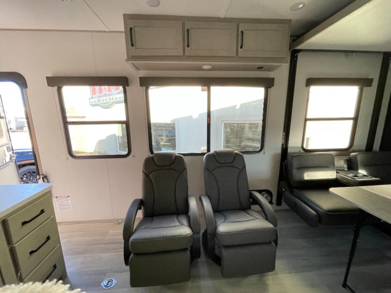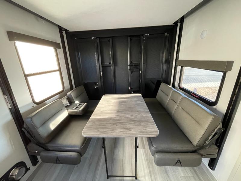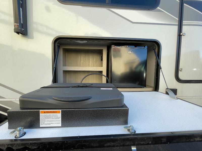 It's time to load up your family and off-road toys to enjoy the great outdoors at the speed you like with this Momentum G-Class toy hauler. Once at your destination, unload the toys from the 13' 6" of cargo space, put out the two slides, and start having fun. You can cook meals in the spacious kitchen area with extra counter space and relax in the Euro chairs or on the rollover sofas with a table. You can even cook at the outside kitchen underneath the 19' power awning.