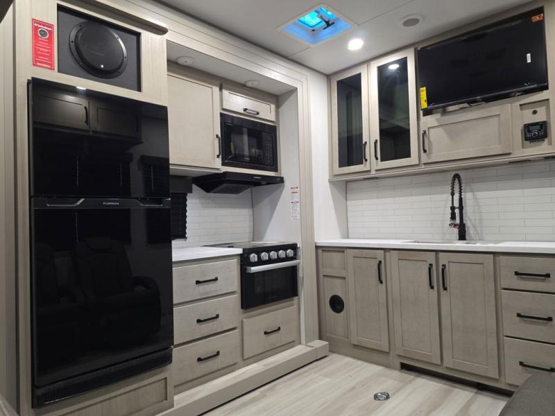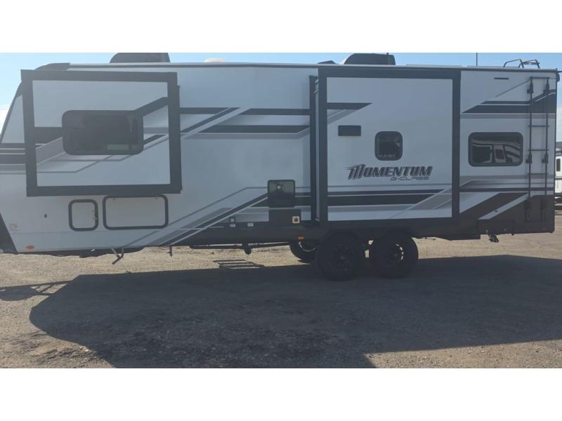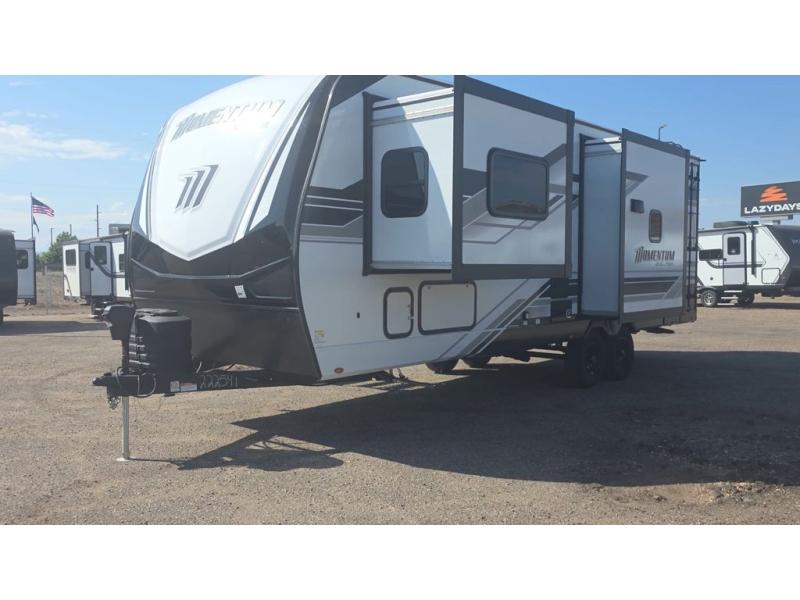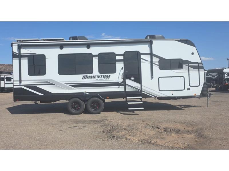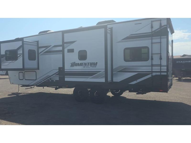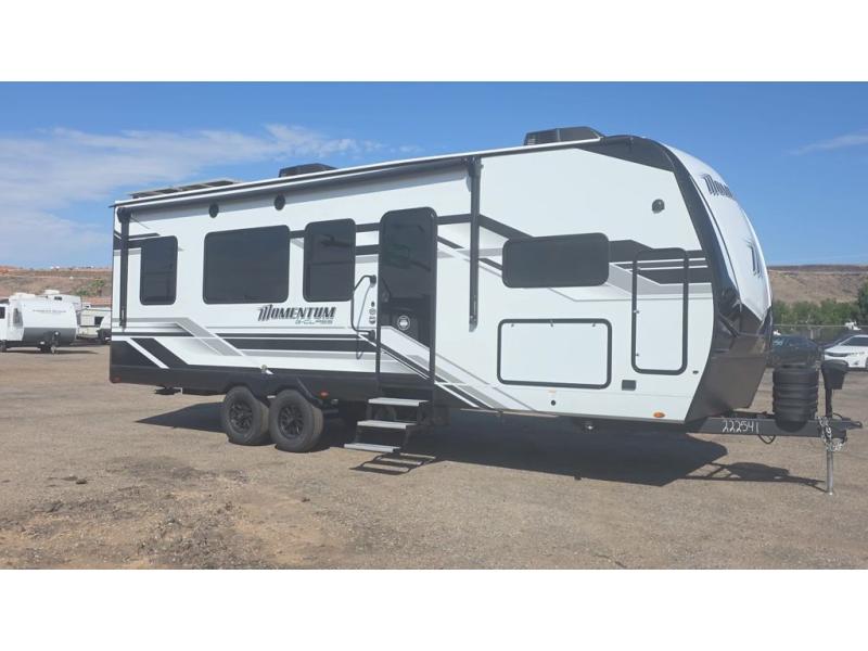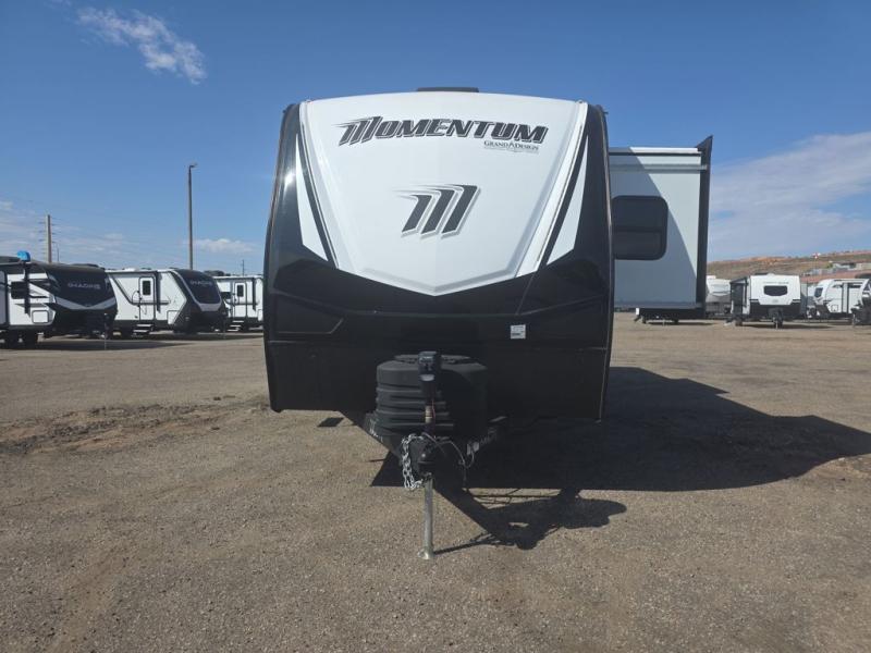 Are you looking for adventure and fun? The Momentum G-Class toy hauler by Grand Design will help you find it! You can explore during any season you choose with the Insulation Package that includes a heated and enclosed underbelly with suspended tanks, a high-capacity furnace, a moisture barrier floor enclosure, and cabinet-mounted heat ducts. Each model includes a fuel station with an interior and exterior gauge, a dovetail rear rend, and 2,500-LB tie-downs anchored into the chassis. Throughout the Momentum G-Class interior, you'll enjoy many comfortable features like large panoramic windows, a shower skylight, USB chargers in the bedroom, and residential cabinetry.