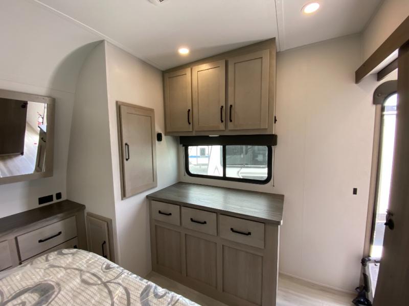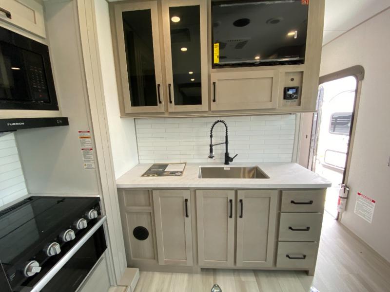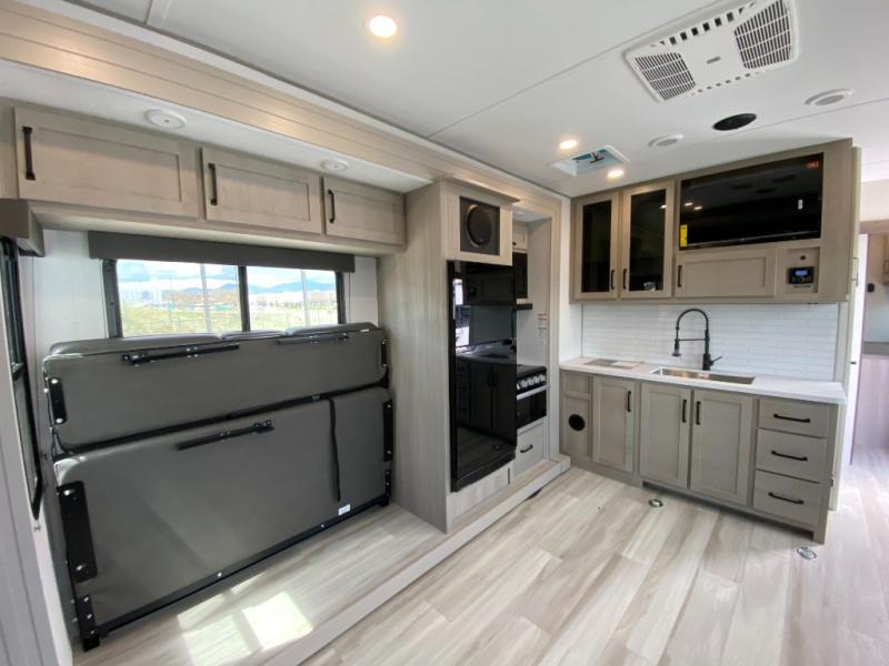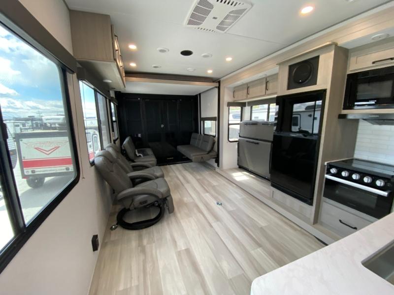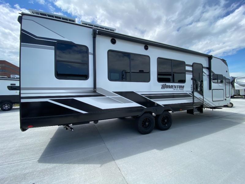 Are you looking for adventure and fun? The Momentum G-Class toy hauler by Grand Design will help you find it! You can explore during any season you choose with the Insulation Package that includes a heated and enclosed underbelly with suspended tanks, a high-capacity furnace, a moisture barrier floor enclosure, and cabinet-mounted heat ducts. Each model includes a fuel station with an interior and exterior gauge, a dovetail rear rend, and 2,500-LB tie-downs anchored into the chassis. Throughout the Momentum G-Class interior, you'll enjoy many comfortable features like large panoramic windows, a shower skylight, USB chargers in the bedroom, and residential cabinetry.