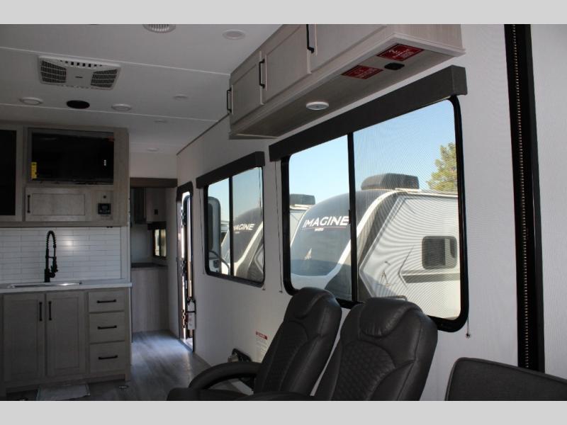 Two modern swivel Euro chairs in the living area make the perfect recovery zone after a long ride. Settle in, put your feet up, and take in the views or catch a movie—comfort never looked so good.