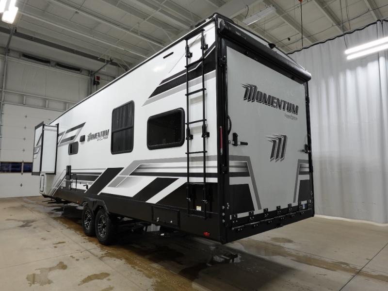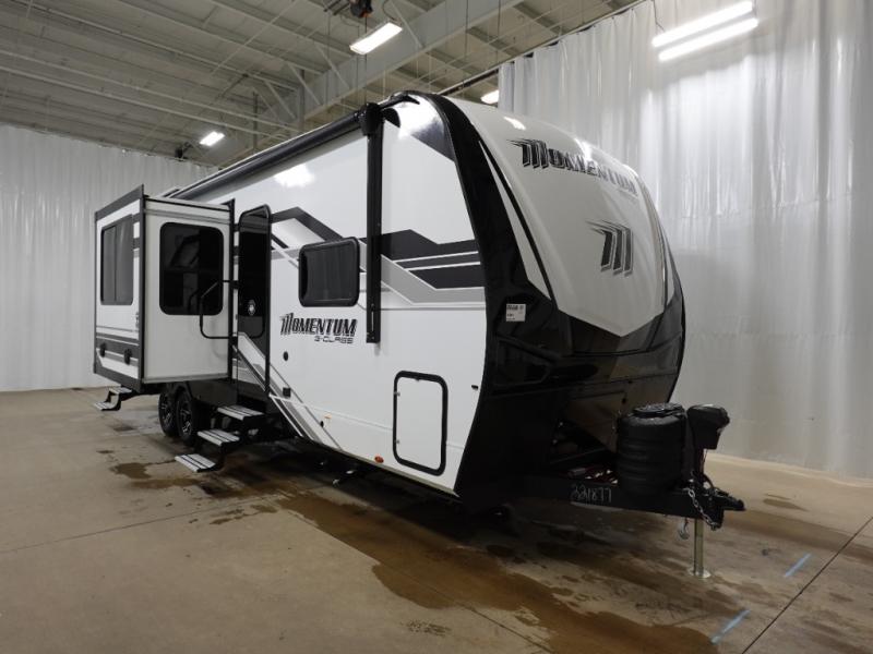 Are you looking for adventure and fun? The Momentum G-Class toy hauler by Grand Design will help you find it! You can explore during any season you choose with the Insulation Package that includes a heated and enclosed underbelly with suspended tanks, a high-capacity furnace, a moisture barrier floor enclosure, and cabinet-mounted heat ducts. Each model includes a fuel station with an interior and exterior gauge, a dovetail rear rend, and 2,500-LB tie-downs anchored into the chassis. Throughout the Momentum G-Class interior, you'll enjoy many comfortable features like large panoramic windows, a shower skylight, USB chargers in the bedroom, and residential cabinetry.