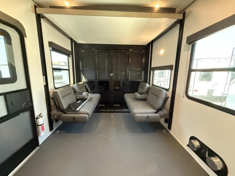 - Durable & Functional Garage Space – Equipped with a dovetail rear end and 2,500-lb tie-downs anchored into the chassis.