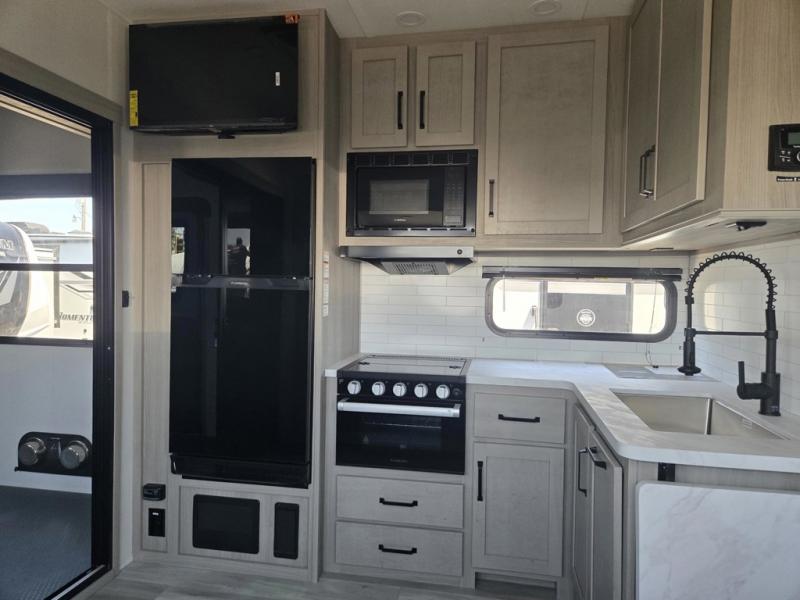 Are you looking for adventure and fun? The Momentum G-Class toy hauler by Grand Design will help you find it! You can explore during any season you choose with the Insulation Package that includes a heated and enclosed underbelly with suspended tanks, a high-capacity furnace, a moisture barrier floor enclosure, and cabinet-mounted heat ducts. Each model includes a fuel station with an interior and exterior gauge, a dovetail rear rend, and 2,500-LB tie-downs anchored into the chassis. Throughout the Momentum G-Class interior, you'll enjoy many comfortable features like large panoramic windows, a shower skylight, USB chargers in the bedroom, and residential cabinetry.
