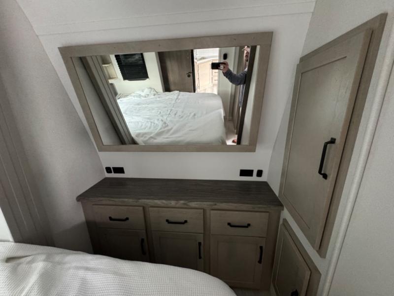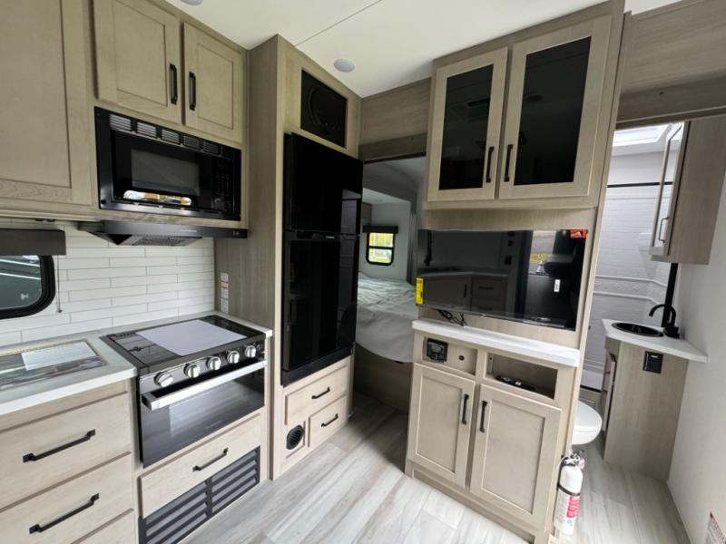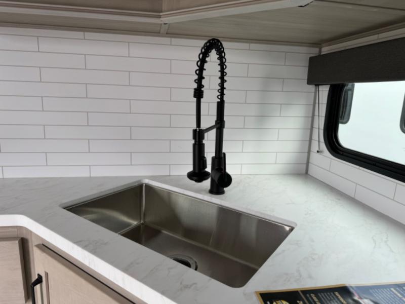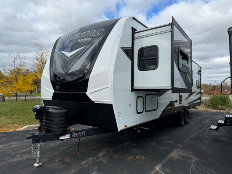 Are you looking for adventure and fun? The Momentum G-Class toy hauler by Grand Design will help you find it! You can explore during any season you choose with the Insulation Package that includes a heated and enclosed underbelly with suspended tanks, a high-capacity furnace, a moisture barrier floor enclosure, and cabinet-mounted heat ducts. Each model includes a 30-gallon fuel station with an interior and exterior gauge, a dovetail rear rend, and 2,500-LB tie-downs anchored into the chassis. Throughout the Momentum G-Class interior, you'll enjoy many comfortable features like large panoramic windows, a shower skylight, USB chargers in the bedroom, and residential cabinetry.