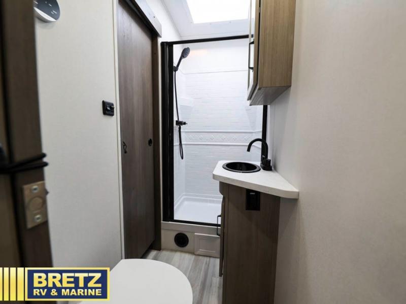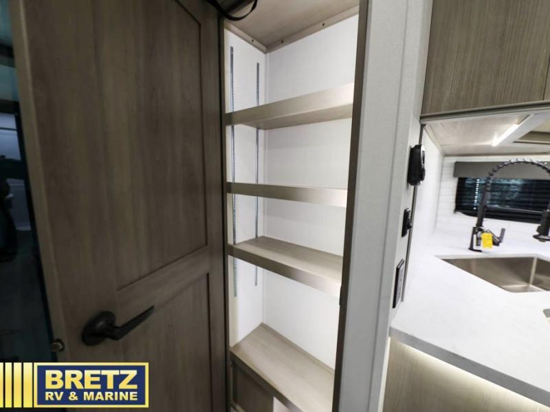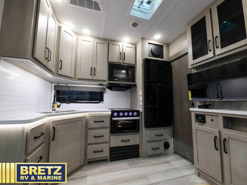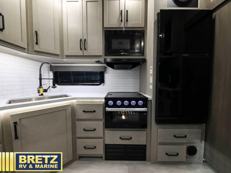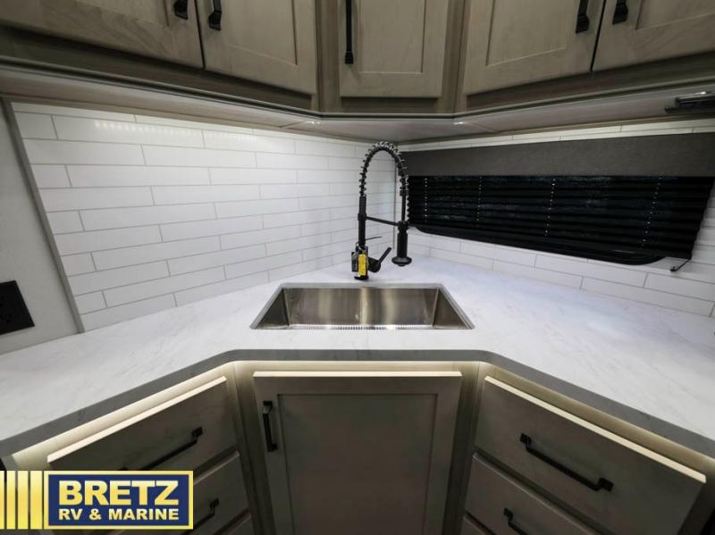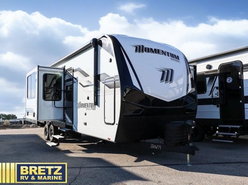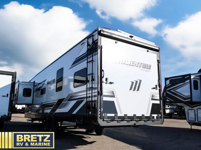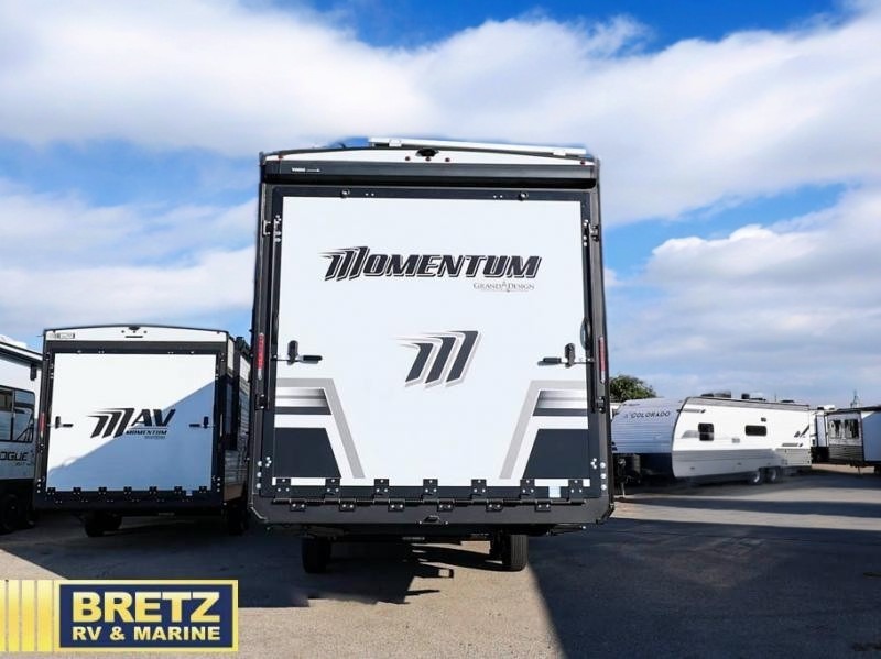 Are you looking for adventure and fun? The Momentum G-Class toy hauler by Grand Design will help you find it! You can explore during any season you choose with the Insulation Package that includes a heated and enclosed underbelly with suspended tanks, a high-capacity furnace, a moisture barrier floor enclosure, and cabinet-mounted heat ducts. Each model includes a 30-gallon fuel station with an interior and exterior gauge, a dovetail rear rend, and 2,500-LB tie-downs anchored into the chassis. Throughout the Momentum G-Class interior, you'll enjoy many comfortable features like large panoramic windows, a shower skylight, USB chargers in the bedroom, and residential cabinetry.