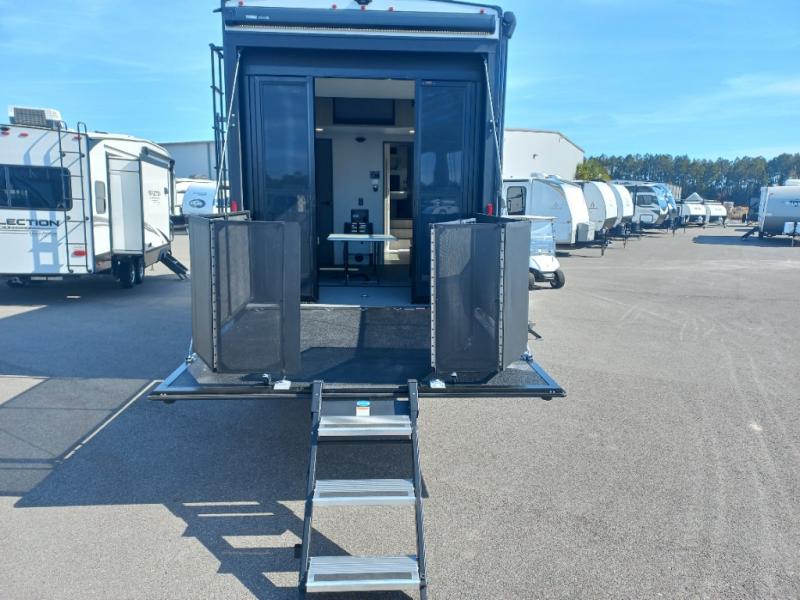 Are you looking forward to arriving at your destination, unloading your toys from an 11' separate garage, and heading out to the dunes? You can return to this Momentum G-Class toy hauler afterwards to find the convenience of having a full and half bath, two entry doors, and a loft bed. The rear ramp door can even be converted into a patio, plus there are exterior speakers to keep the party going! You will also appreciate the separate living area with a fireplace, theater seating slide, and full kitchen amenities. The front bedroom offers an escape to rest and relax for the next ride. Take a look outside and inside because you will be sold!