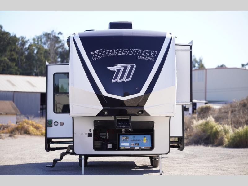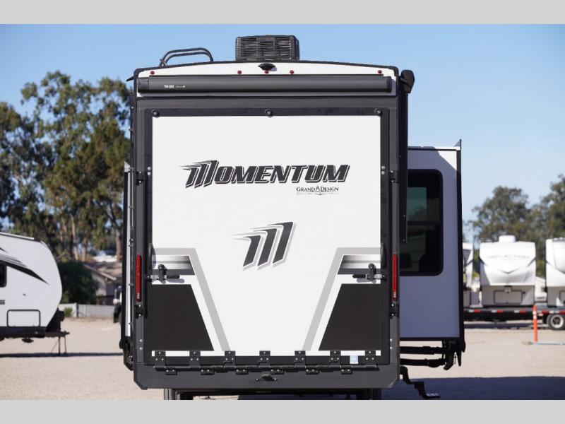 Are you looking for adventure and fun? The Momentum G-Class toy hauler by Grand Design will help you find it! You can explore during any season you choose with the Insulation Package that includes a heated and enclosed underbelly with suspended tanks, a high-capacity furnace, a moisture barrier floor enclosure, and cabinet-mounted heat ducts. Each model includes a fuel station with an interior and exterior gauge, a dovetail rear rend, and 2,500-LB tie-downs anchored into the chassis. Throughout the Momentum G-Class interior, you'll enjoy many comfortable features like large panoramic windows, a shower skylight, USB chargers in the bedroom, and residential cabinetry.