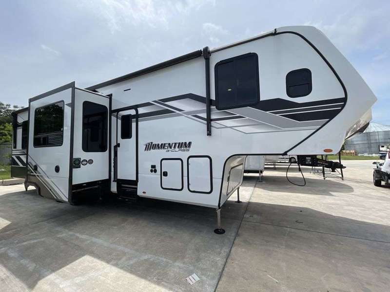 Are you looking for adventure and fun? The Momentum G-Class toy hauler by Grand Design will help you find it! You can explore during any season you choose with the Insulation Package that includes a heated and enclosed underbelly with suspended tanks, a high-capacity furnace, a moisture barrier floor enclosure, and cabinet-mounted heat ducts. Each model includes a fuel station with an interior and exterior gauge, a dovetail rear rend, and 2,500-LB tie-downs anchored into the chassis. Throughout the Momentum G-Class interior, you'll enjoy many comfortable features like large panoramic windows, a shower skylight, USB chargers in the bedroom, and residential cabinetry.