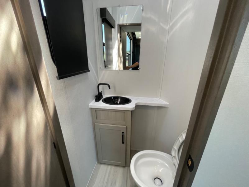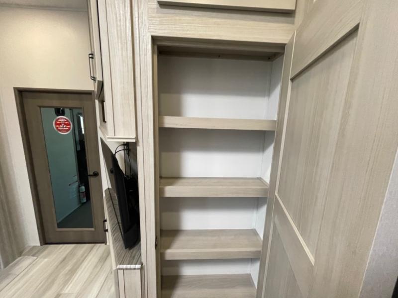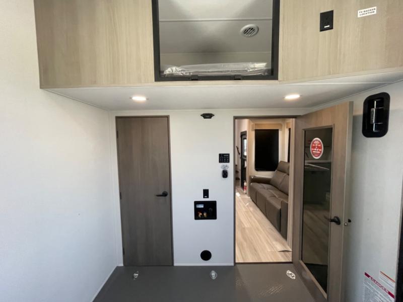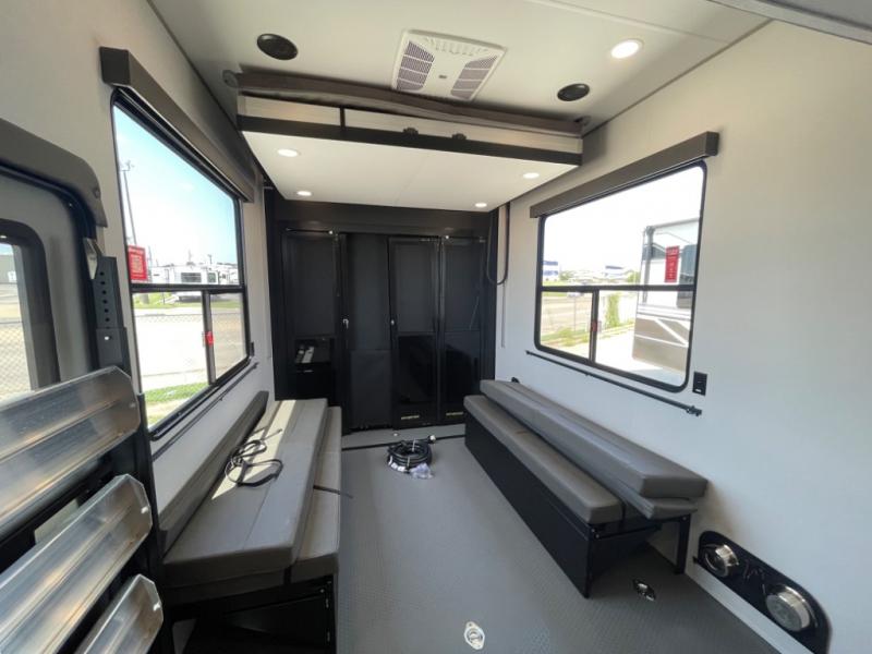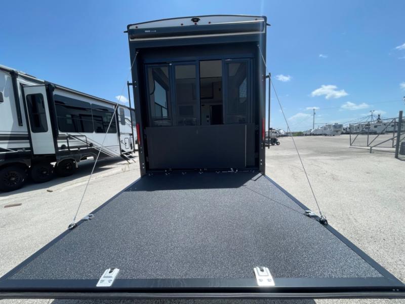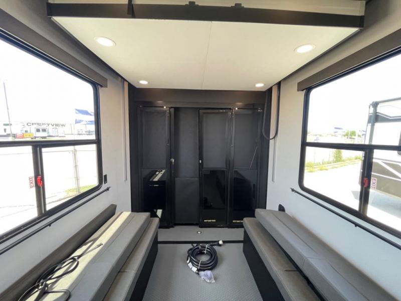 Just imagine the fun you will have with this Momentum G-Class toy hauler set up at any off-road park. With the 14' 6" separate garage that includes a half bath, a second exterior entry door, and a loft, you will have your own area to do what you like. The rear ramp door can even be converted into a patio if you need more outdoor living space. The main living area offers a fireplace, theater seating, and kitchen appliances to make delicious home cooked meals. You will also be able to stay clean and ready for the next ride with the walk-in shower in the full bathroom, and the front master bedroom has plenty of storage for clothing with the wardrobe slide and overhead cabinets.