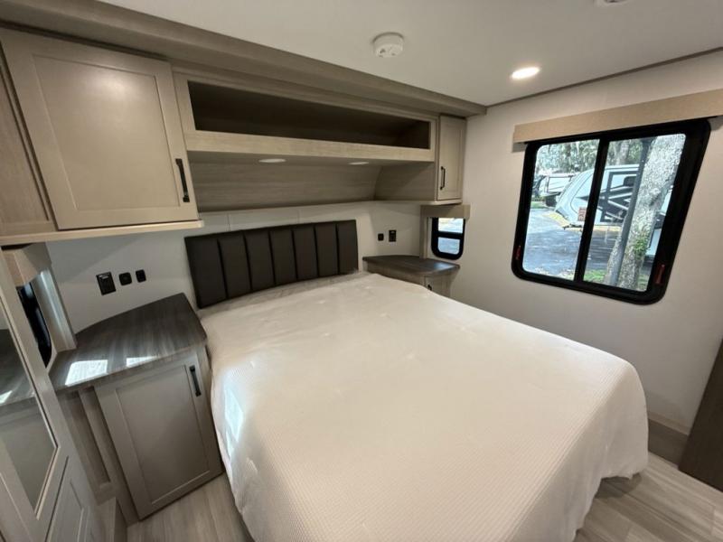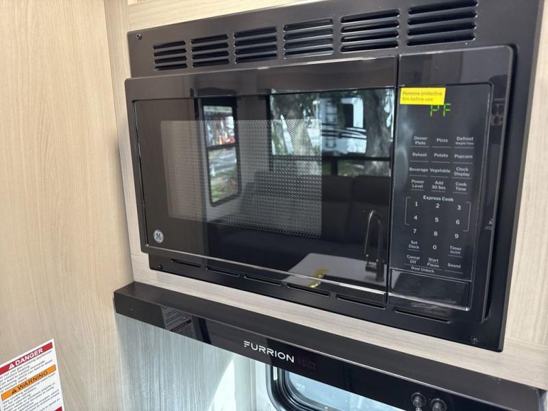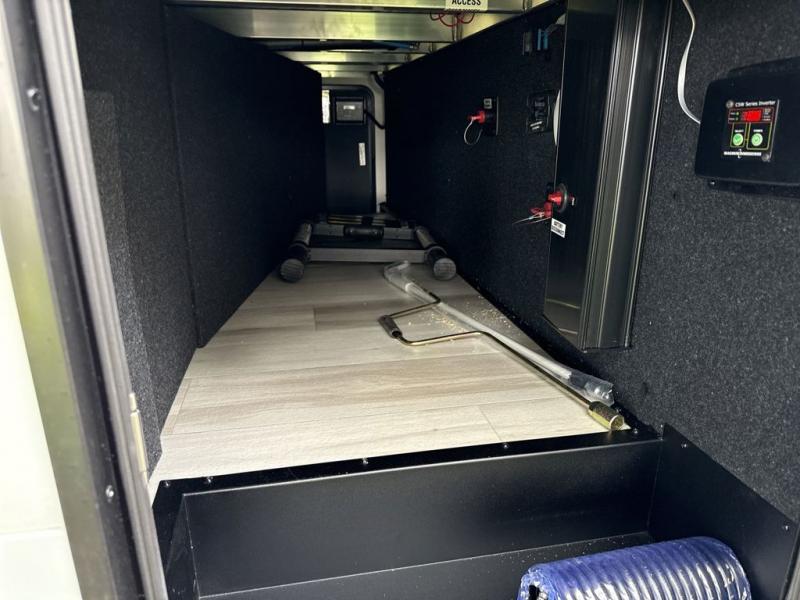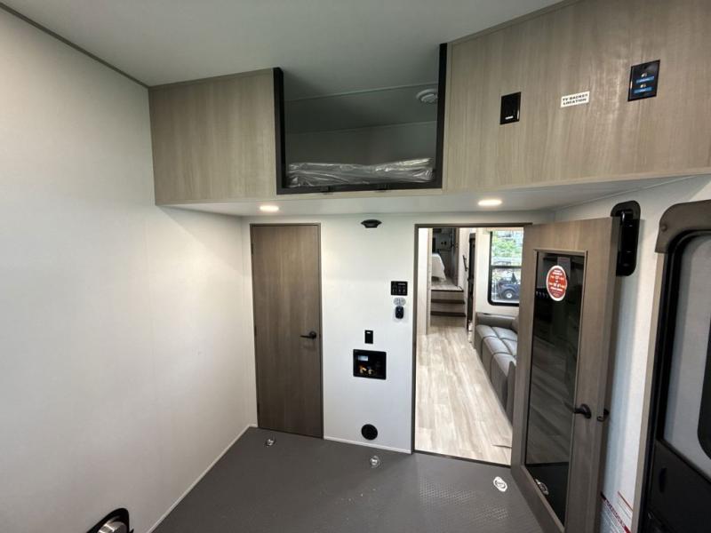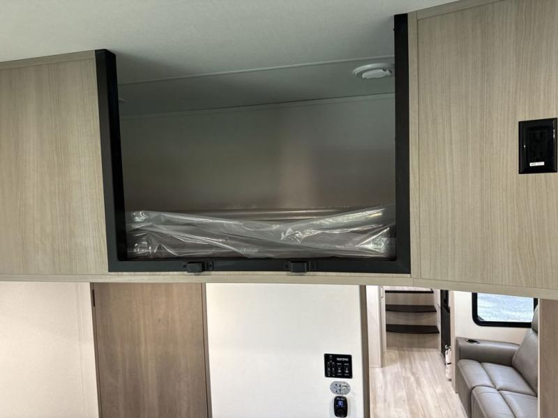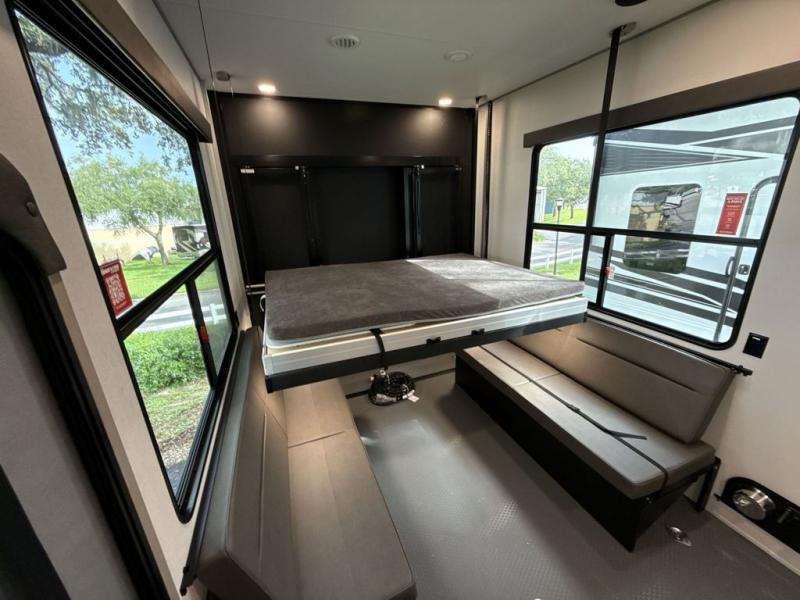 Just imagine the fun you will have with this Momentum G-Class toy hauler set up at any off-road park. With the 14' 6" separate garage that includes a half bath, a second exterior entry door, and a loft, you will have your own area to do what you like. The rear ramp door can even be converted into a patio if you need more outdoor living space. The main living area offers a fireplace, theater seating, and kitchen appliances to make delicious home cooked meals. You will also be able to stay clean and ready for the next ride with the walk-in shower in the full bathroom, and the front master bedroom has plenty of storage for clothing with the wardrobe slide and overhead cabinets.