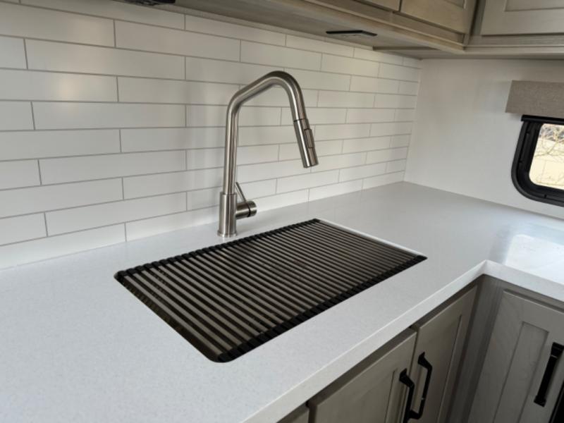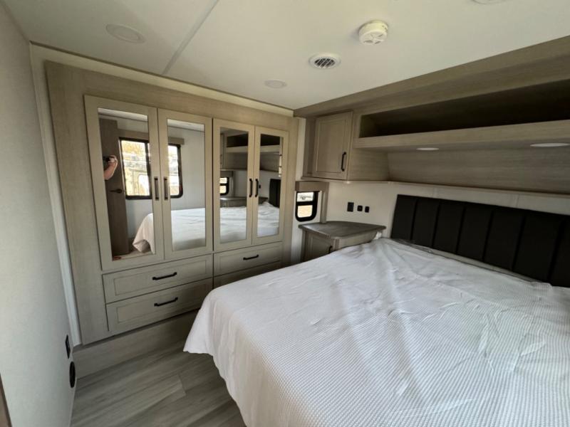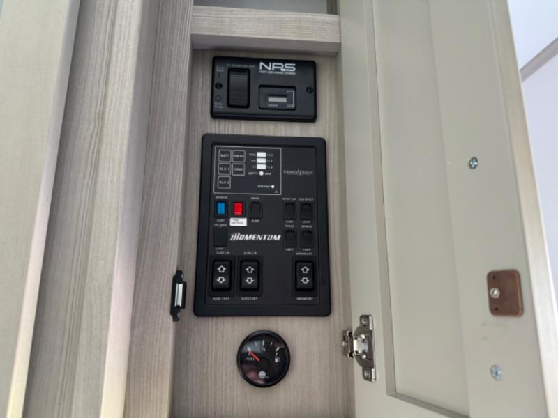 Are you looking for adventure and fun? The Momentum G-Class toy hauler by Grand Design will help you find it! You can explore during any season you choose with the Insulation Package that includes a heated and enclosed underbelly with suspended tanks, a high-capacity furnace, a moisture barrier floor enclosure, and cabinet-mounted heat ducts. Each model includes a fuel station with an interior and exterior gauge, a dovetail rear rend, and 2,500-LB tie-downs anchored into the chassis. Throughout the Momentum G-Class interior, you'll enjoy many comfortable features like large panoramic windows, a shower skylight, USB chargers in the bedroom, and residential cabinetry.
