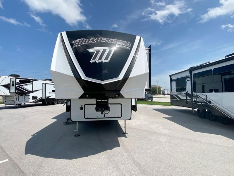 Are you looking for adventure and fun? The Momentum G-Class toy hauler by Grand Design will help you find it! You can explore during any season you choose with the Insulation Package that includes a heated and enclosed underbelly with suspended tanks, a high-capacity furnace, a moisture barrier floor enclosure, and cabinet-mounted heat ducts. Each model includes a fuel station with an interior and exterior gauge, a dovetail rear rend, and 2,500-LB tie-downs anchored into the chassis. Throughout the Momentum G-Class interior, you'll enjoy many comfortable features like large panoramic windows, a shower skylight, USB chargers in the bedroom, and residential cabinetry.