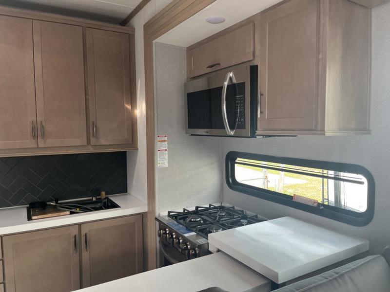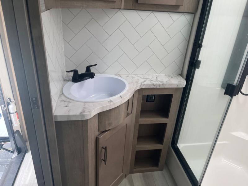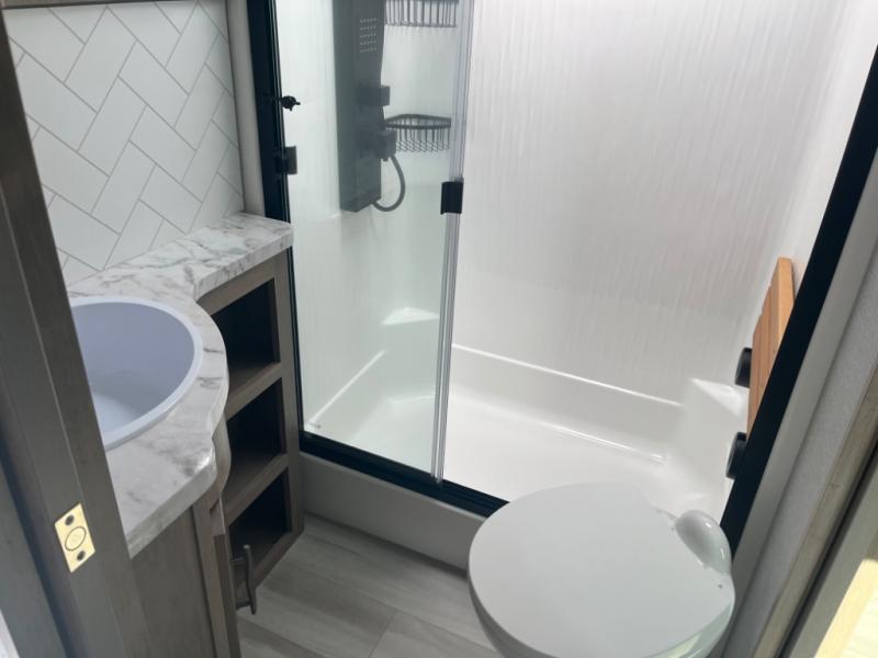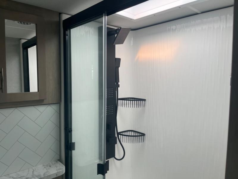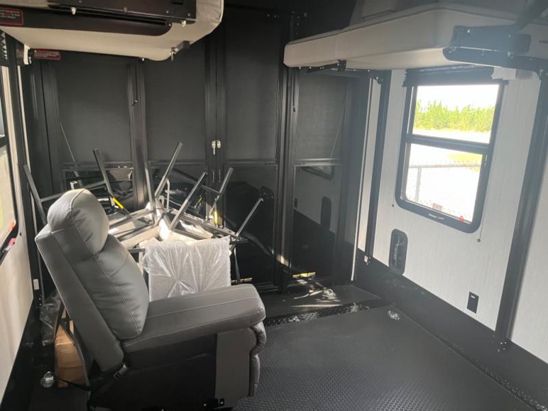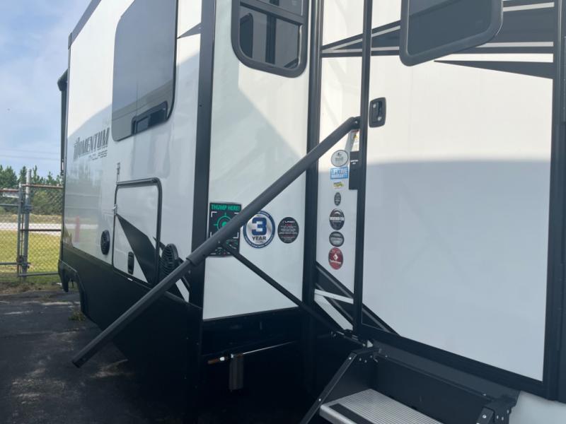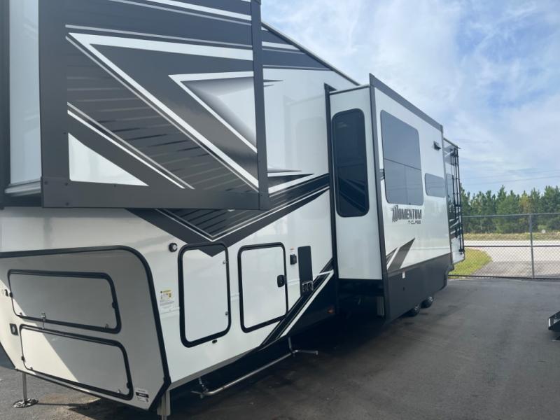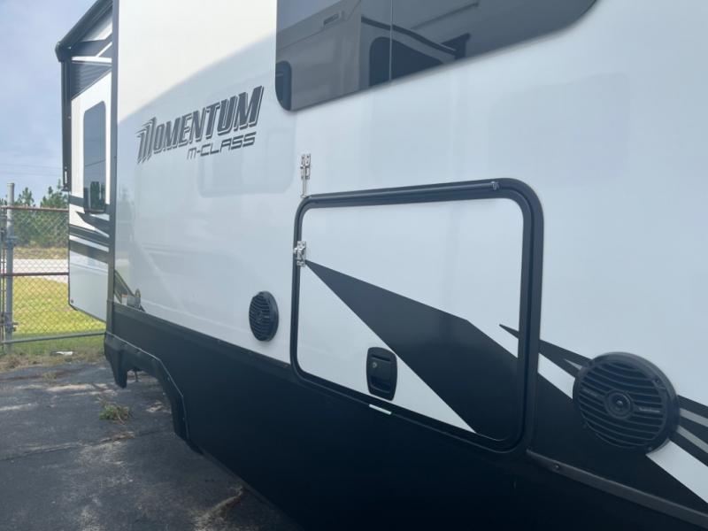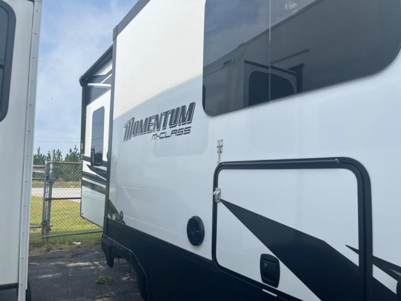 With any Momentum M-Class toy hauler by Grand Design, you will enjoy luxury at every turn! They have been constructed to a superior standard with a thermal roof design, triple insulated main floor and garage floor, and a Rail-Tite underbelly seal that will allow you to camp in all elements. Each model also features an 8' 5" wide body chassis with a wide rail design, no wheel wheels, and a dovetail entry for easier loading. The Stealth A/C system provides maximum cooling power, and the CRE3000 suspension system means you can enjoy a smooth tow each time. You will love the luxurious interior with a professional grade stainless steel cooktop, interior color changing LED accent lighting, a fiberglass shower with a glass door, and solid surface countertops.