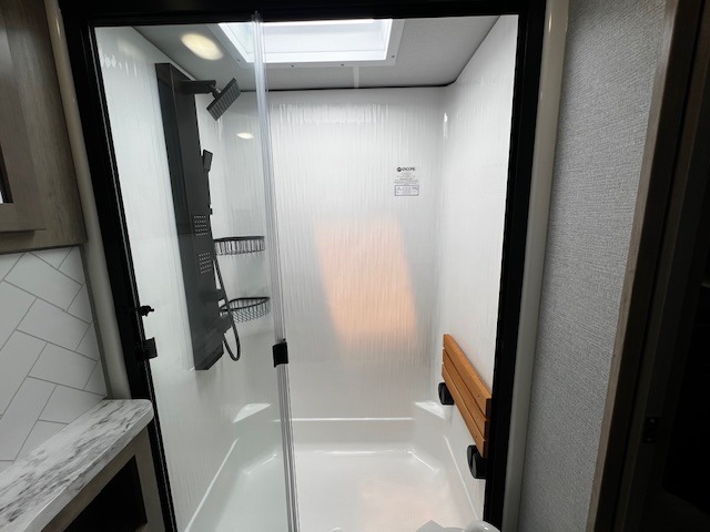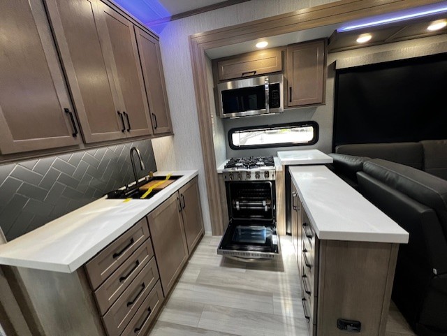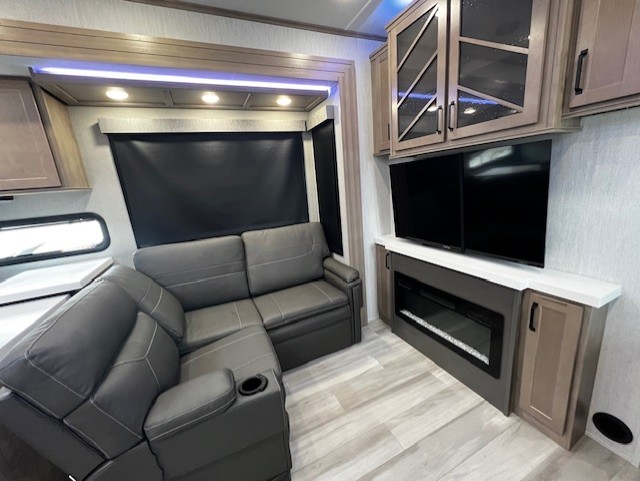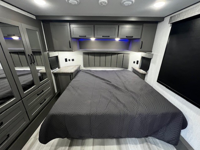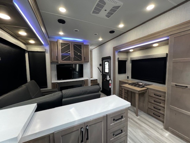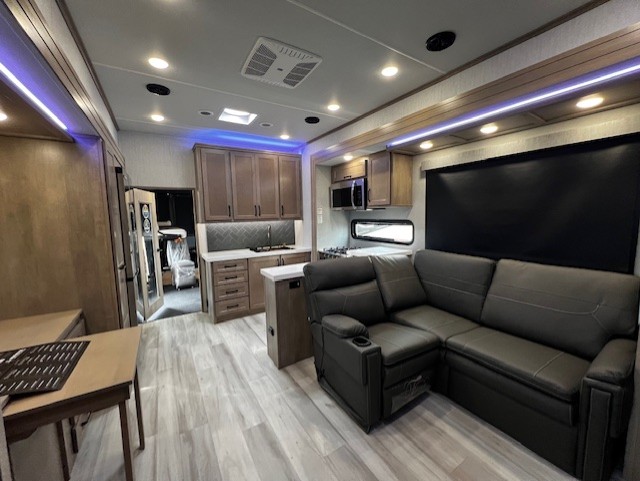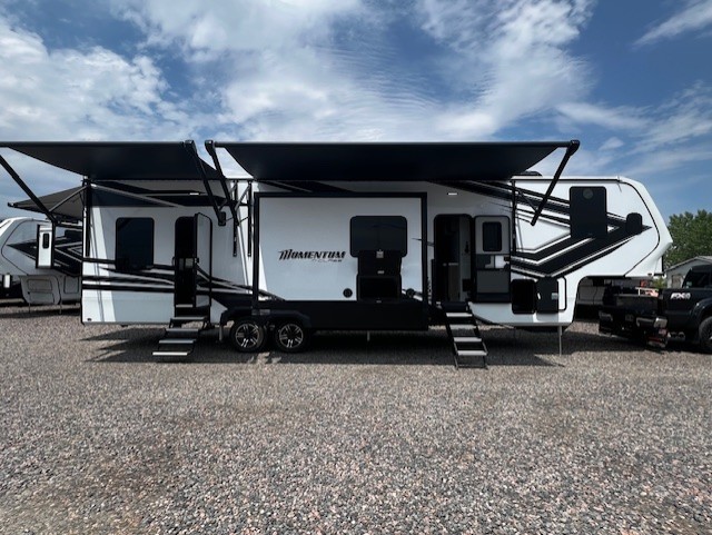 With any Momentum M-Class toy hauler by Grand Design, you will enjoy luxury at every turn! They have been constructed to a superior standard with a thermal roof design, triple insulated main floor and garage floor, and a Rail-Tite underbelly seal that will allow you to camp in all elements. Each model also features an 8' 5" wide body chassis with a wide rail design, no wheel wheels, and a dovetail entry for easier loading. The Stealth A/C system provides maximum cooling power, and the CRE3000 suspension system means you can enjoy a smooth tow each time. You will love the luxurious interior with a professional grade stainless steel cooktop, interior color changing LED accent lighting, a fiberglass shower with a glass door, and solid surface countertops.