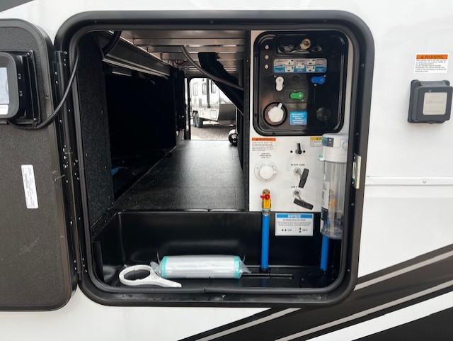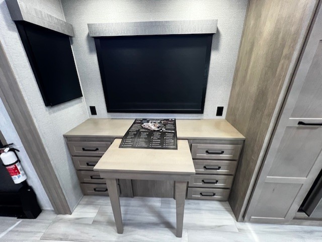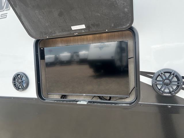 Spend your days at the campground kicking up mud with this toy hauler in tow! once you've unloaded your toys from the ramp door, you can use the 60 gallon fuel station to fill up and head out on a trail! The overhead bed provides a place for guests to sleep, and the optional Happi-Jac rollover sofas and a table with a top bed will give you the option to add even more seating and sleeping space. There is even an optional half bath here if you choose to make this space more accommodating. Head to the middle kitchen and living area where you'll enjoy generous counter space to prep meals, a spacious 20 cu. ft. refrigerator, an L-shaped sofa, plus a hybrid desk/dinette that will serve as a dining or working space. The dual entry bath creates a front master bedroom you are sure to love. There is a queen bed with an optional king bed, plenty of overhead storage, and a wardrobe slide to keep your things organized.