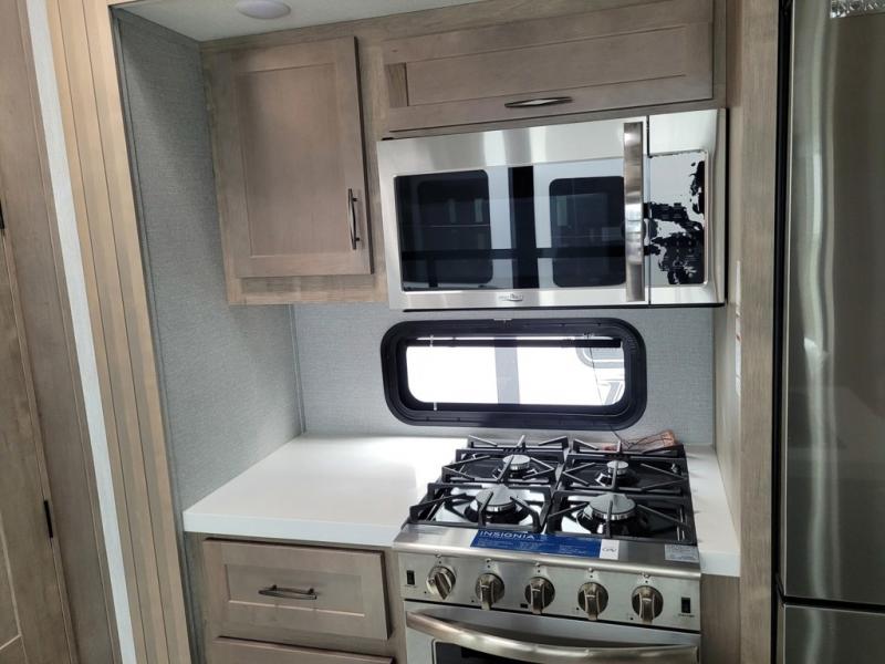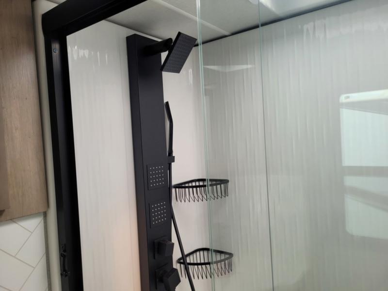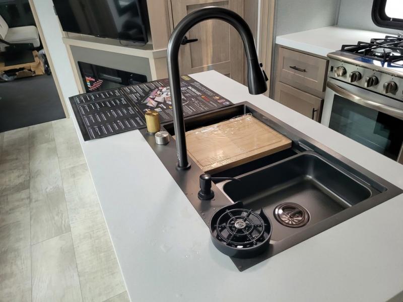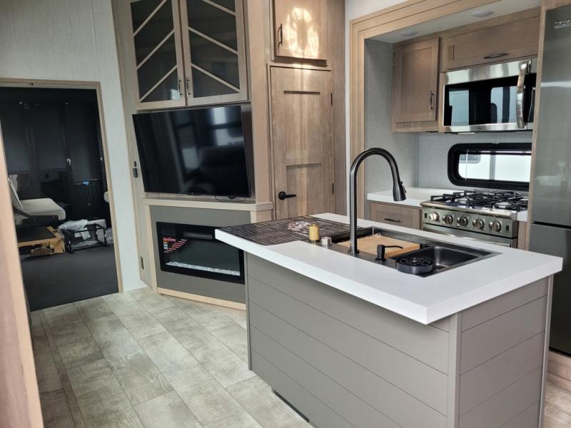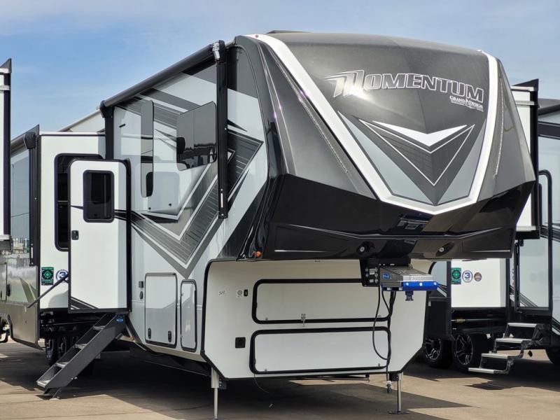 With any Momentum M-Class toy hauler by Grand Design, you will enjoy luxury at every turn! They have been constructed to a superior standard with a thermal roof design, triple insulated main floor and garage floor, and a Rail-Tite underbelly seal that will allow you to camp in all elements. Each model also features an 8' 5" wide body chassis with a wide rail design, no wheel wheels, and a dovetail entry for easier loading. The Stealth A/C system provides maximum cooling power, and the CRE3000 suspension system means you can enjoy a smooth tow each time. You will love the luxurious interior with a professional grade stainless steel cooktop, interior color changing LED accent lighting, a fiberglass shower with a glass door, and solid surface countertops.