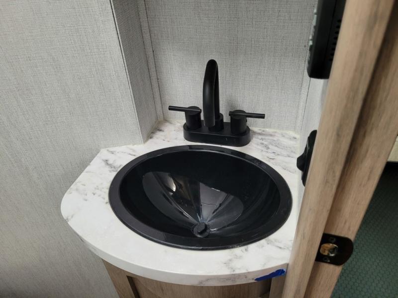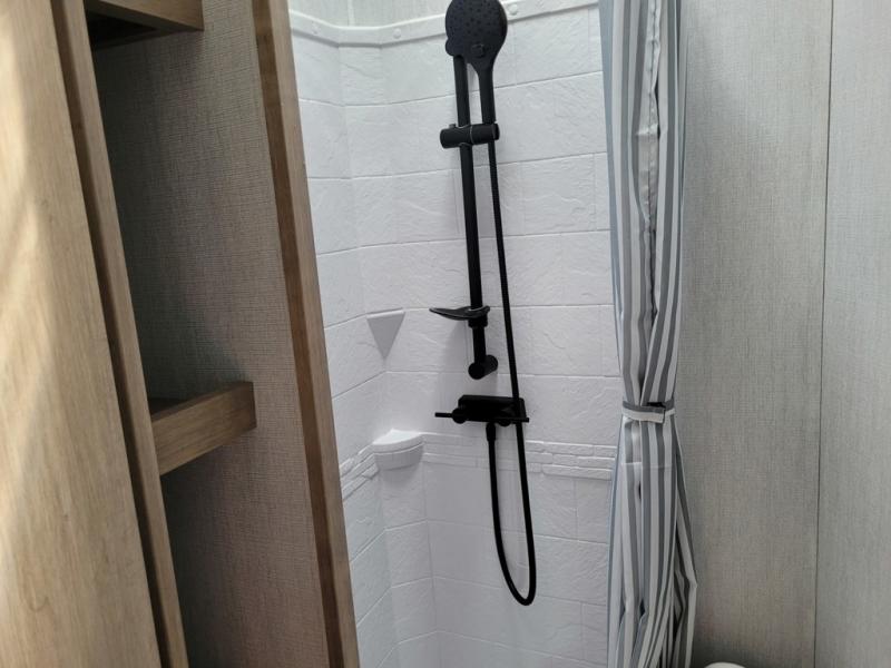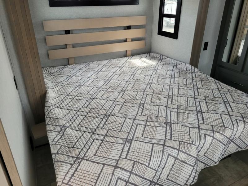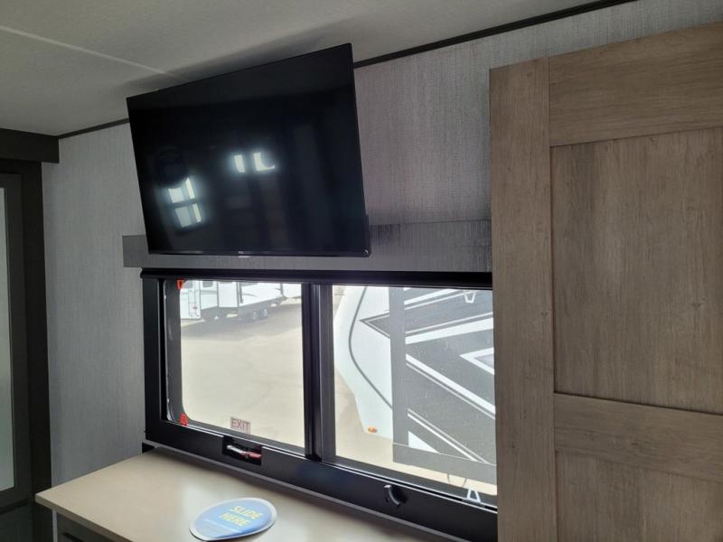 Spend your days at the campground kicking up mud with this toy hauler in tow! once you've unloaded your toys from the ramp door, you can use the 60 gallon fuel station to fill up and head out on a trail! The overhead bed provides a place for guests to sleep, and the optional Happi-Jac rollover sofas and a table with a top bed will give you the option to add even more seating and sleeping space. There is even an optional half bath here if you choose to make this space more accommodating. Head to the middle kitchen and living area where you'll enjoy generous counter space to prep meals, a spacious 20 cu. ft. refrigerator, an L-shaped sofa, plus a hybrid desk/dinette that will serve as a dining or working space. The dual entry bath creates a front master bedroom you are sure to love. There is a queen bed with an optional king bed, plenty of overhead storage, and a wardrobe slide to keep your things organized.