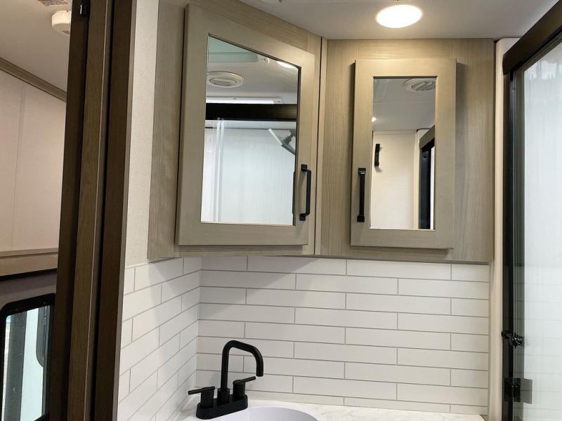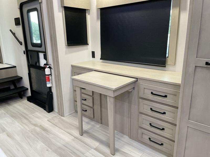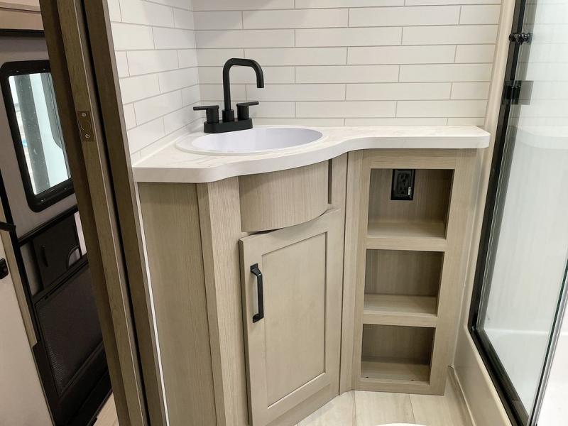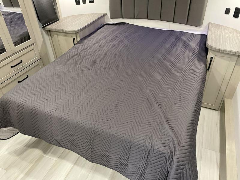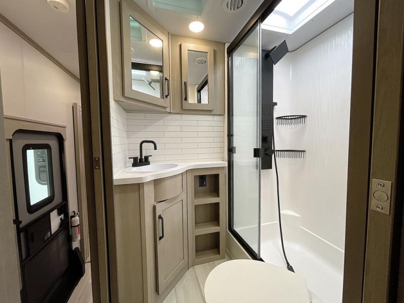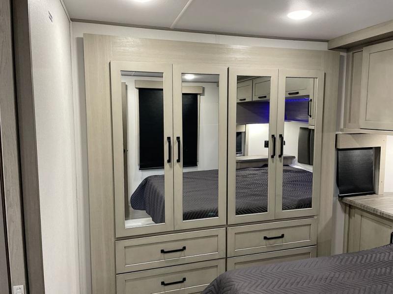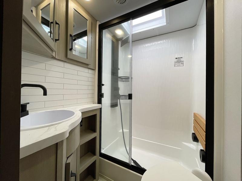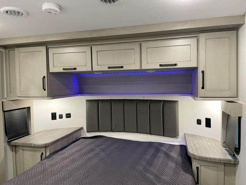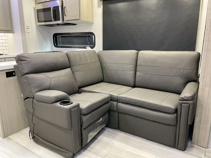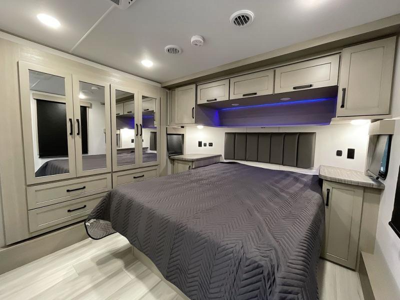 With any Momentum M-Class toy hauler by Grand Design, you will enjoy luxury at every turn! They have been constructed to a superior standard with a thermal roof design, triple insulated main floor and garage floor, and a Rail-Tite underbelly seal that will allow you to camp in all elements. Each model also features an 8' 5" wide body chassis with a wide rail design, no wheel wheels, and a dovetail entry for easier loading. The Stealth A/C system provides maximum cooling power, and the CRE3000 suspension system means you can enjoy a smooth tow each time. You will love the luxurious interior with a professional grade stainless steel cooktop, interior color changing LED accent lighting, a fiberglass shower with a glass door, and solid surface countertops.
