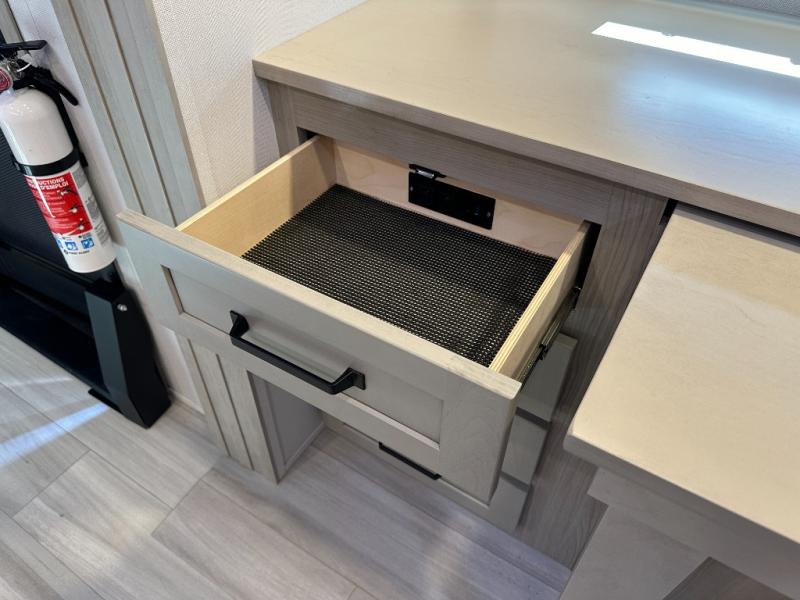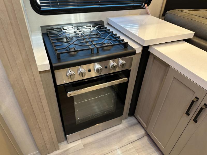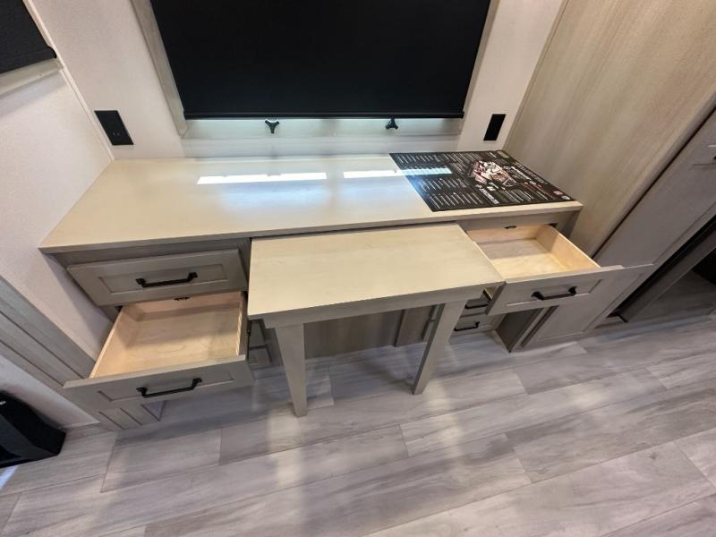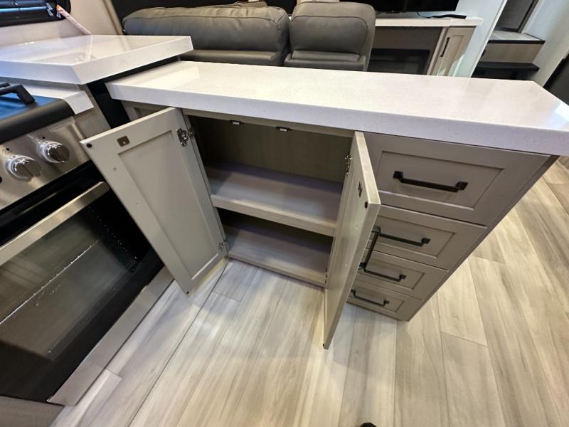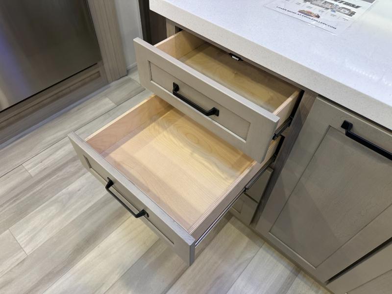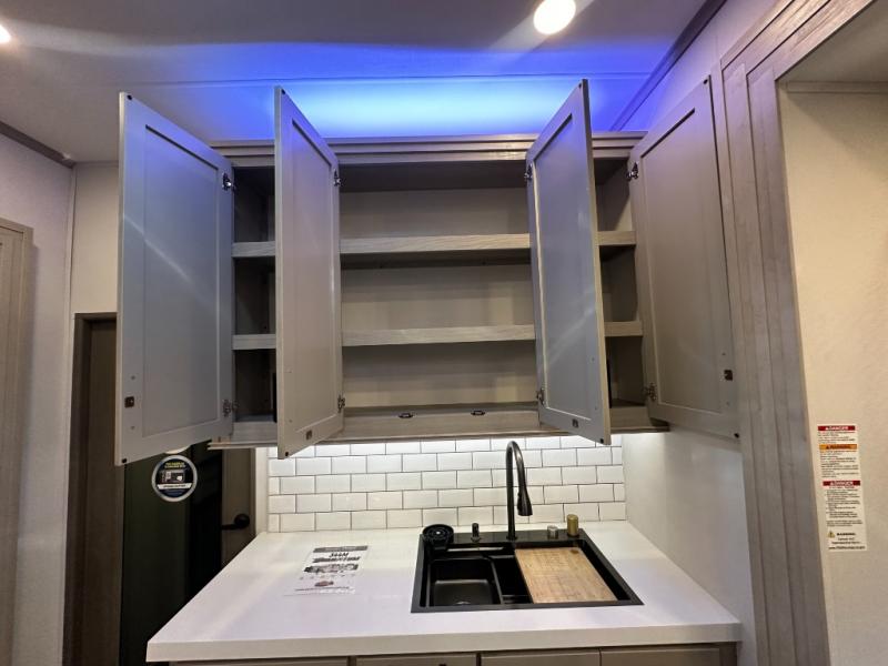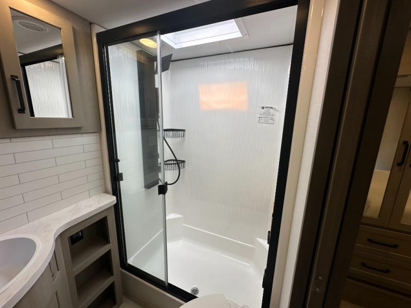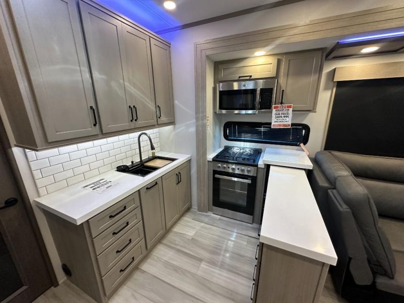 With any Momentum M-Class toy hauler by Grand Design, you will enjoy luxury at every turn! They have been constructed to a superior standard with a thermal roof design, triple insulated main floor and garage floor, and a Rail-Tite underbelly seal that will allow you to camp in all elements. Each model also features an 8' 5" wide body chassis with a wide rail design, no wheel wheels, and a dovetail entry for easier loading. The Stealth A/C system provides maximum cooling power, and the CRE3000 suspension system means you can enjoy a smooth tow each time. You will love the luxurious interior with a professional grade stainless steel cooktop, interior color changing LED accent lighting, a fiberglass shower with a glass door, and solid surface countertops.