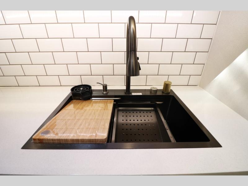 Gourmet Kitchen: Features a smart sink with a colander, cutting board, soap dispenser, cup rinser, waterfall, and three spray modes, revolutionizing your cooking experience.