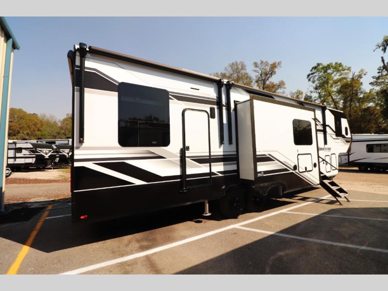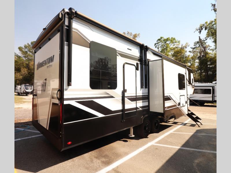 Discover the pinnacle of luxury and functionality with the new 2025 Grand Design Momentum M-Class 344M, now available at Campers Inn RV of Ocala. This exceptional toy hauler combines innovative design with top-tier amenities, ensuring every adventure is both comfortable and exhilarating.