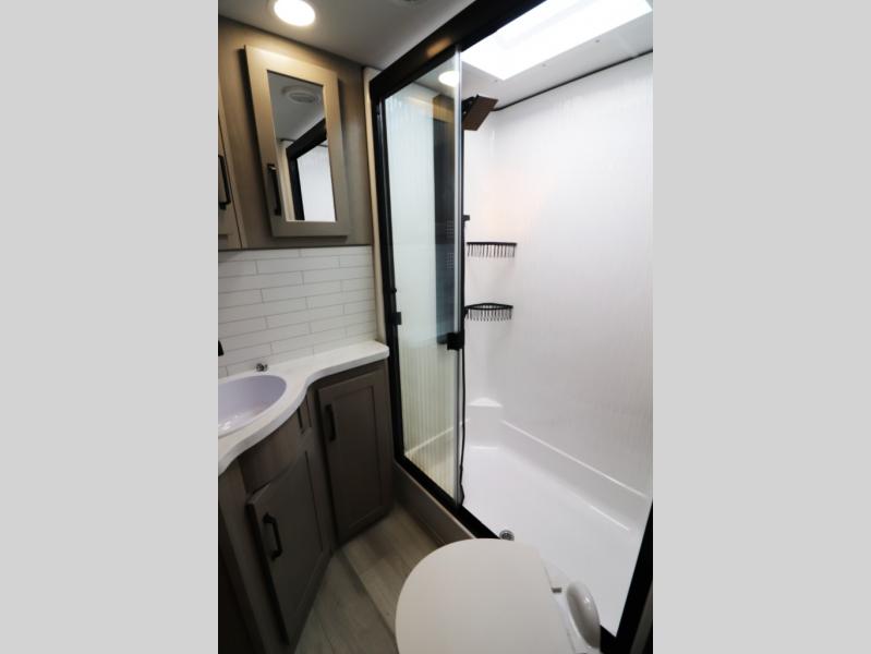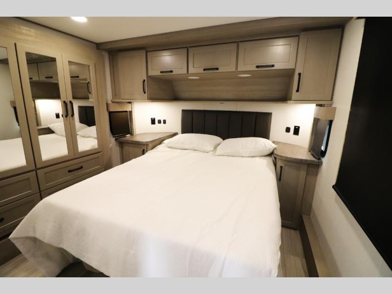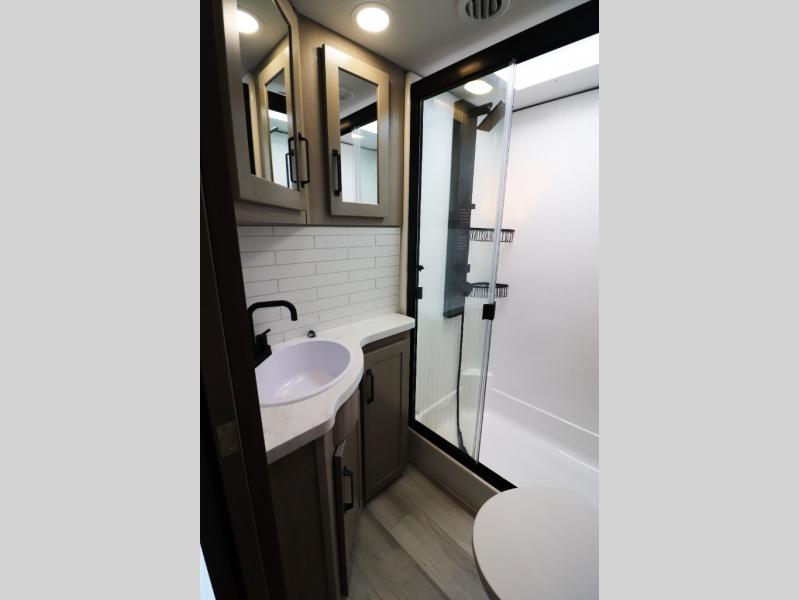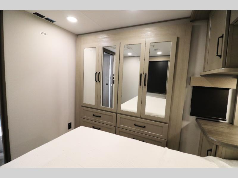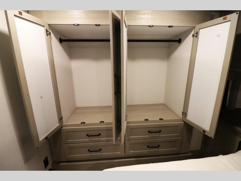 Luxurious Interior: Enjoy soft-close cabinet doors and drawers, a sunken shower accommodating all heights, and nightstands with USB-C and 110V outlets, ideal for CPAP machines.