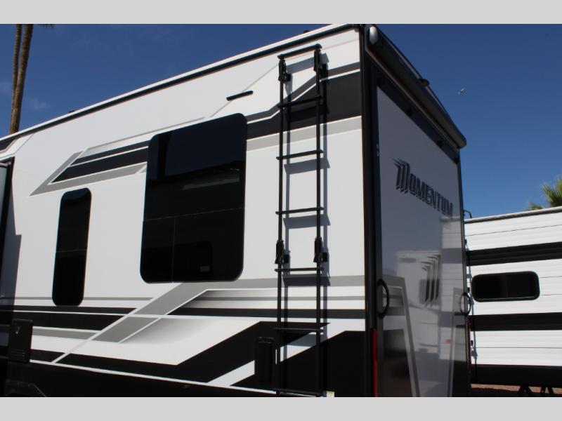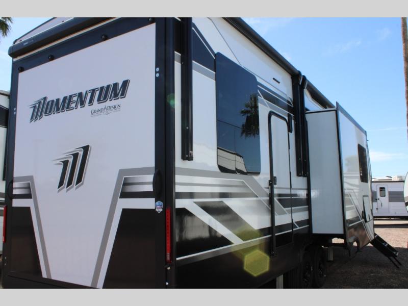 Get ready for adventure with the 2025 Grand Design Momentum M-Class 344M, a toy hauler built to handle your wildest outdoor excursions while providing top-tier luxury and comfort. Whether you're hitting the dunes, exploring rugged trails, or setting up camp in a scenic remote location, this fifth wheel delivers the perfect combination of power, style, and functionality. With an 11' separate garage, spacious living areas, and high-end amenities, the Momentum M-Class 344M is your gateway to unforgettable adventures.