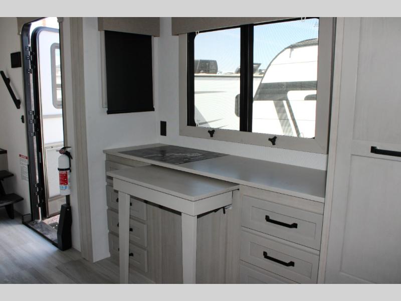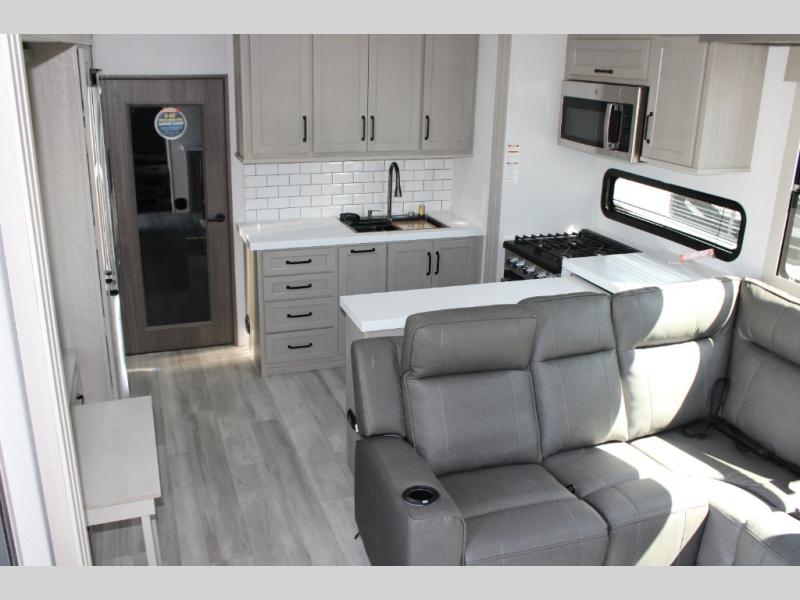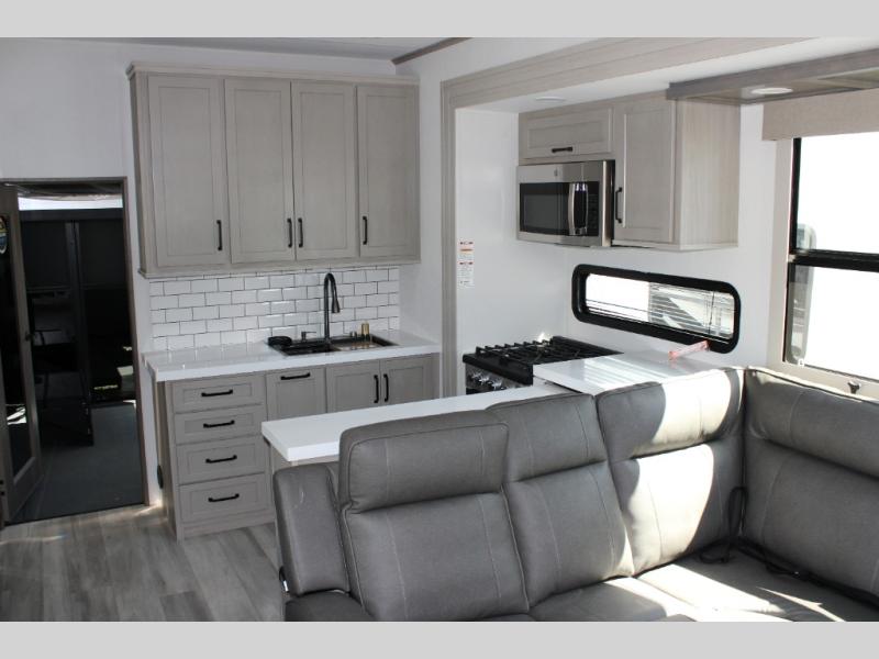 - Dual Opposing Slides in the Living Area – Expands your interior space, creating a wide-open floorplan with ample seating, a spacious kitchen, and plenty of room to unwind after a day of adventure.