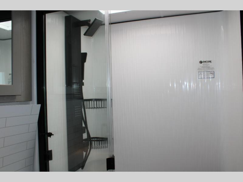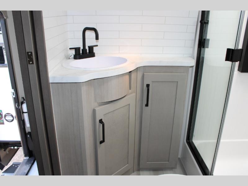- Luxury Bathroom Amenities – Freshen up in a fiberglass shower with a glass door, upgraded fixtures, and modern cabinetry, ensuring a spa-like experience even when you're off the grid.