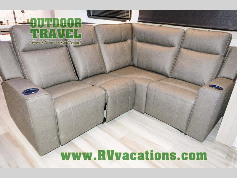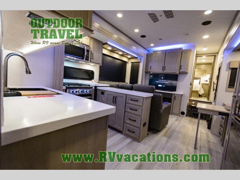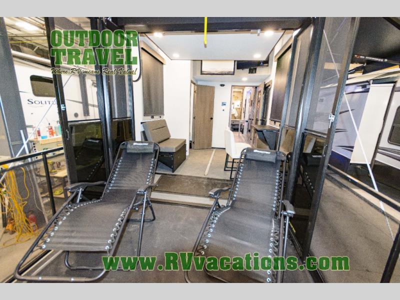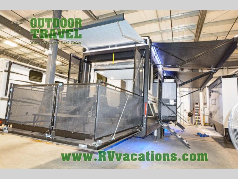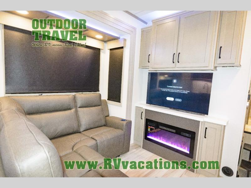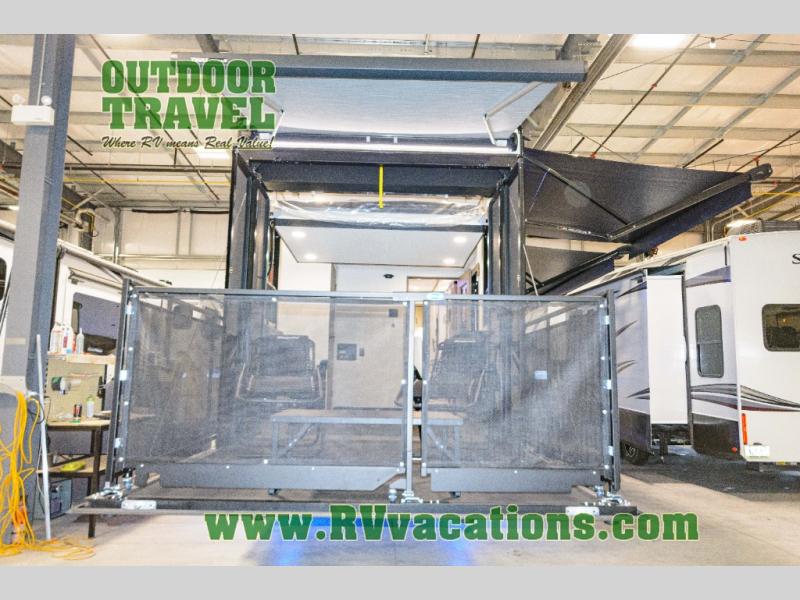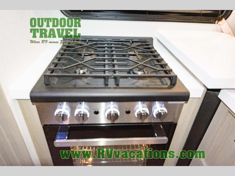 With any Momentum M-Class toy hauler by Grand Design, you will enjoy luxury at every turn! They have been constructed to a superior standard with a thermal roof design, triple insulated main floor and garage floor, and a Rail-Tite underbelly seal that will allow you to camp in all elements. Each model also features an 8' 5" wide body chassis with a wide rail design, no wheel wheels, and a dovetail entry for easier loading. The Stealth A/C system provides maximum cooling power, and the CRE3000 suspension system means you can enjoy a smooth tow each time. You will love the luxurious interior with a professional grade stainless steel cooktop, interior color changing LED accent lighting, a fiberglass shower with a glass door, and solid surface countertops.