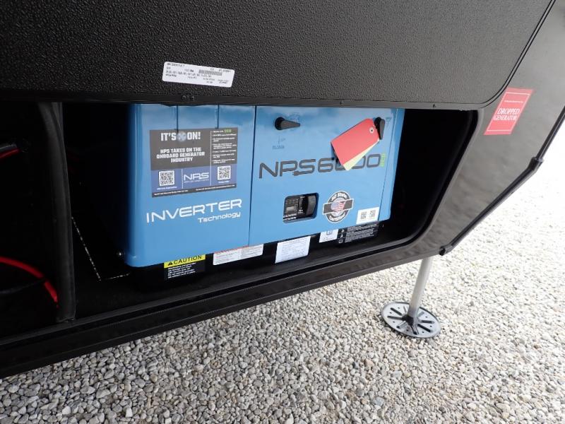 Optioned with: King Bed, Rockford Fosgate, 6K NPS Generator, Gen II 3 Season Garage Door, Heat Pump, 3rd 15000 BTU A/C, Rear Deck with Awning, Soar + Package, and 8K Axles with ABS Drum Brakes.
