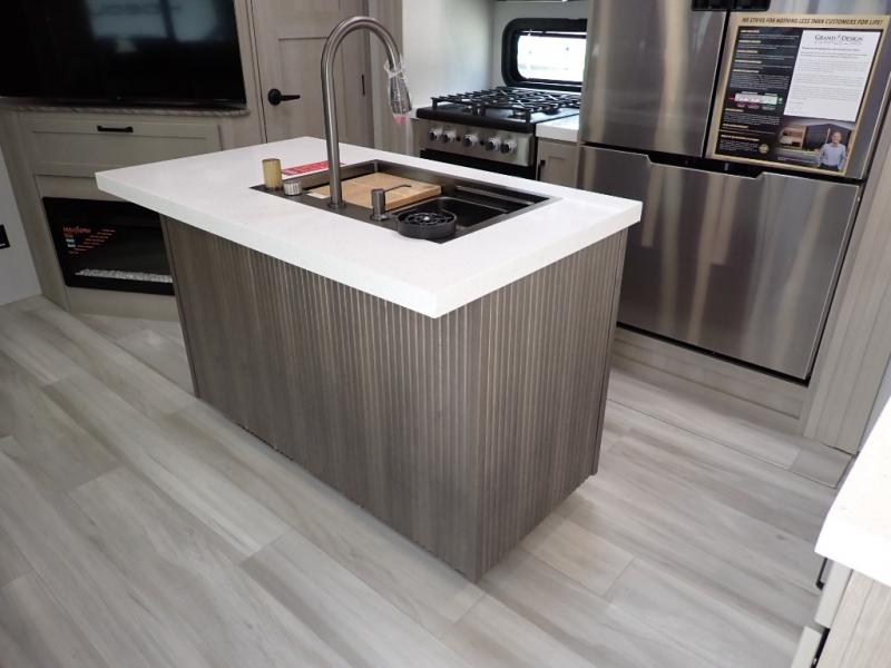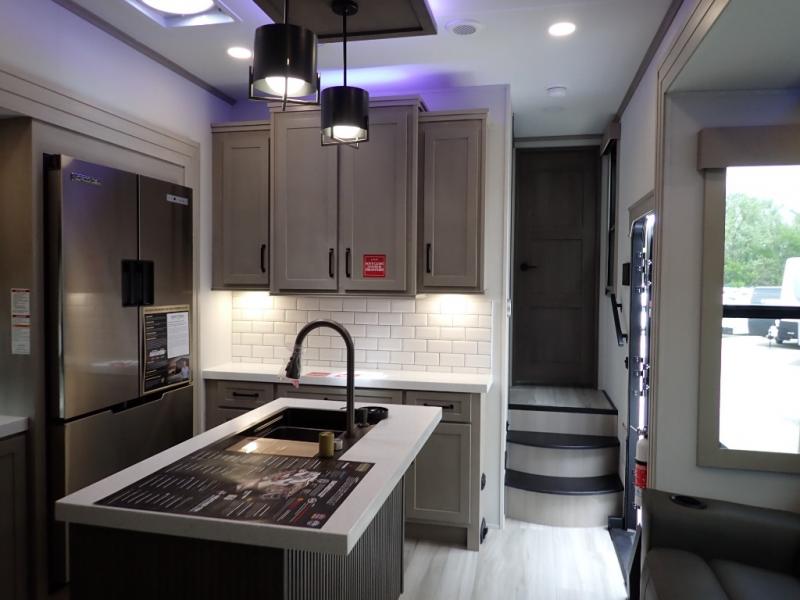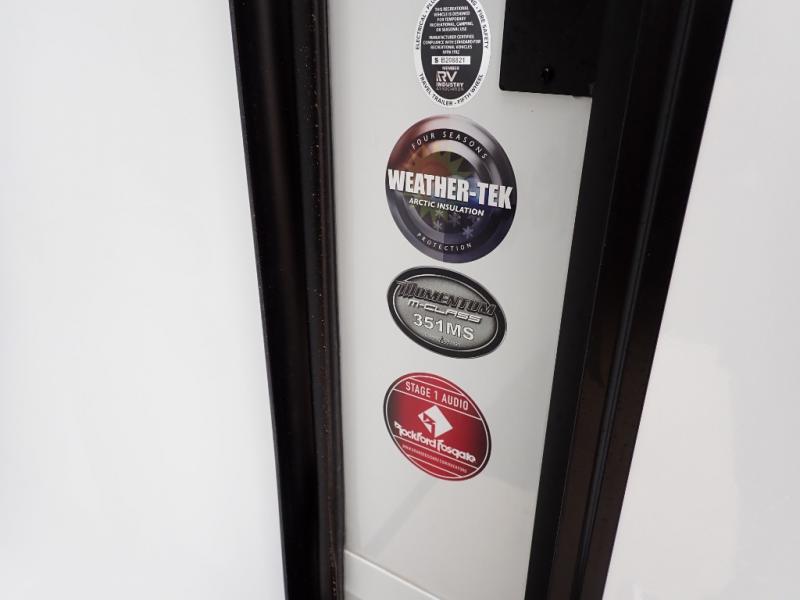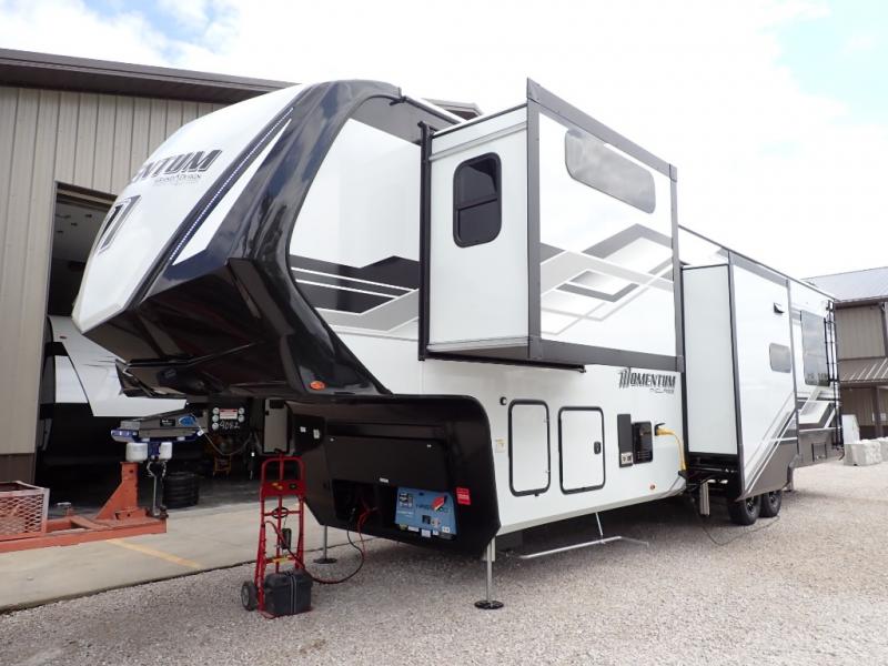 With any Momentum M-Class toy hauler by Grand Design, you will enjoy luxury at every turn! They have been constructed to a superior standard with a thermal roof design, triple insulated main floor and garage floor, and a Rail-Tite underbelly seal that will allow you to camp in all elements. Each model also features an 8' 5" wide body chassis with a wide rail design, no wheel wheels, and a dovetail entry for easier loading. The Stealth A/C system provides maximum cooling power, and the CRE3000 suspension system means you can enjoy a smooth tow each time. You will love the luxurious interior with a professional grade stainless steel cooktop, interior color changing LED accent lighting, a fiberglass shower with a glass door, and solid surface countertops.