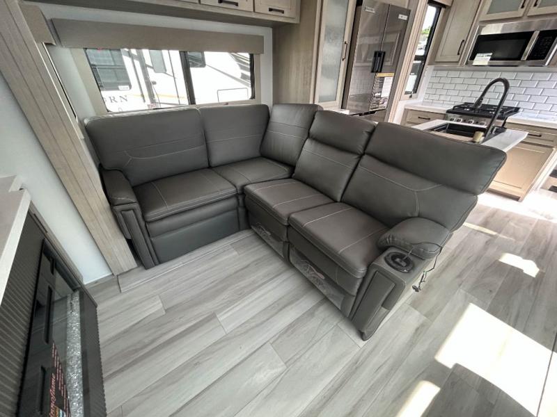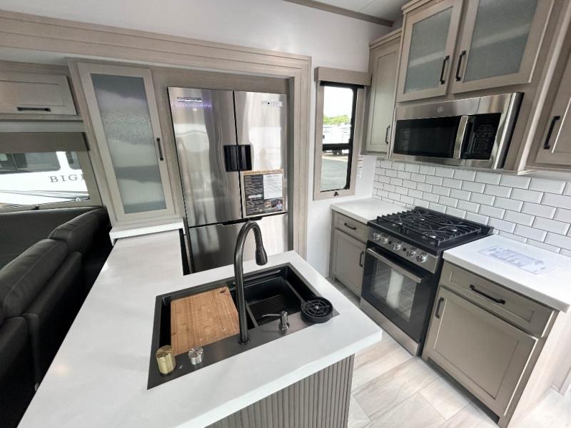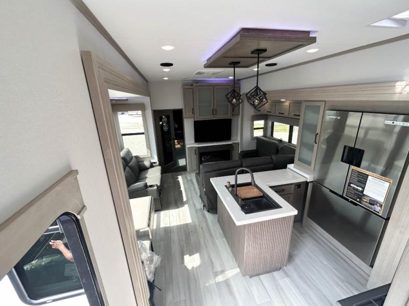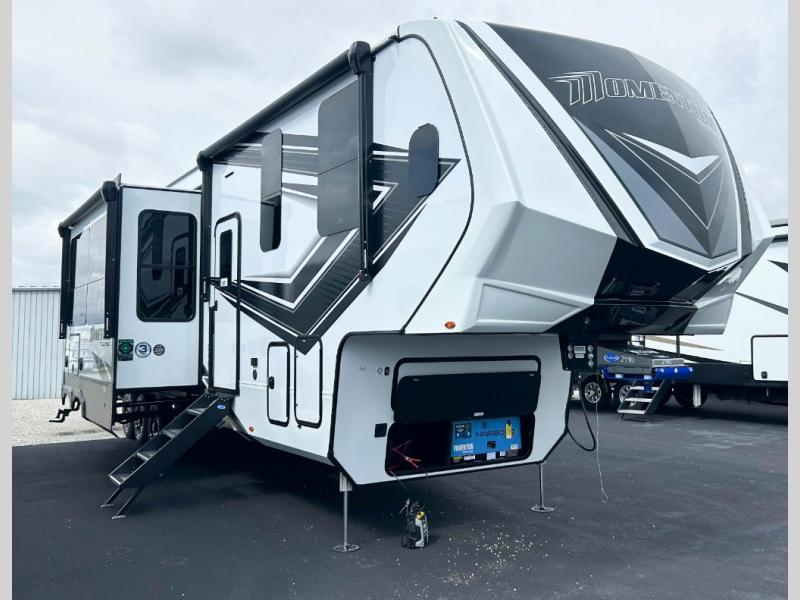 With any Momentum M-Class toy hauler by Grand Design, you will enjoy luxury at every turn! They have been constructed to a superior standard with a thermal roof design, triple insulated main floor and garage floor, and a Rail-Tite underbelly seal that will allow you to camp in all elements. Each model also features an 8' 5" wide body chassis with a wide rail design, no wheel wheels, and a dovetail entry for easier loading. The Stealth A/C system provides maximum cooling power, and the CRE3000 suspension system means you can enjoy a smooth tow each time. You will love the luxurious interior with a professional grade stainless steel cooktop, interior color changing LED accent lighting, a fiberglass shower with a glass door, and solid surface countertops.