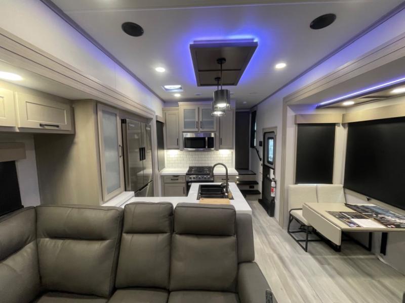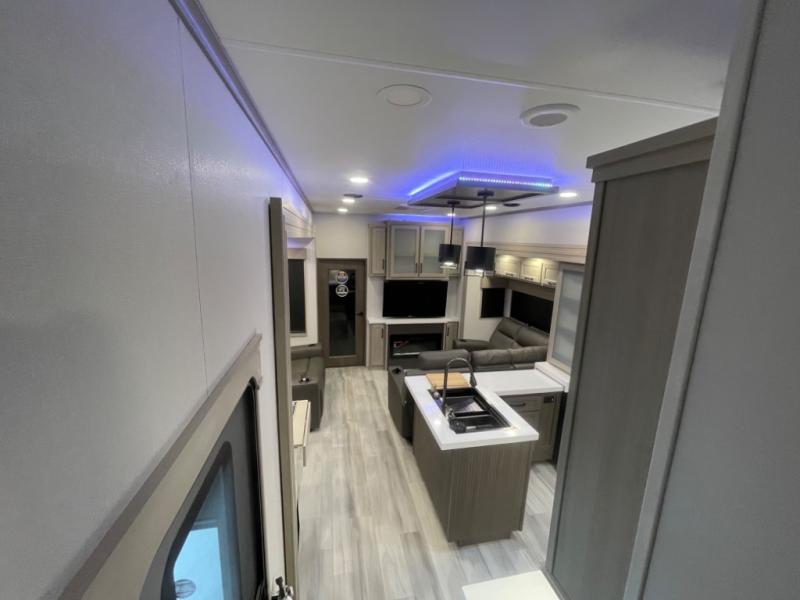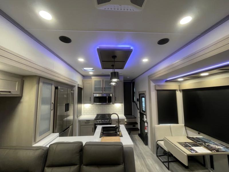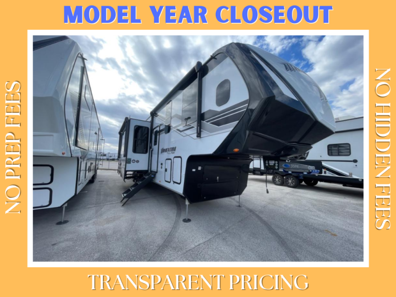 With any Momentum M-Class toy hauler by Grand Design, you will enjoy luxury at every turn! They have been constructed to a superior standard with a thermal roof design, triple insulated main floor and garage floor, and a Rail-Tite underbelly seal that will allow you to camp in all elements. Each model also features an 8' 5" wide body chassis with a wide rail design, no wheel wheels, and a dovetail entry for easier loading. The Stealth A/C system provides maximum cooling power, and the CRE3000 suspension system means you can enjoy a smooth tow each time. You will love the luxurious interior with a professional grade stainless steel cooktop, interior color changing LED accent lighting, a fiberglass shower with a glass door, and solid surface countertops.