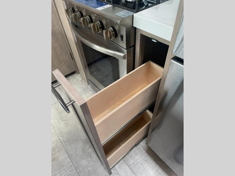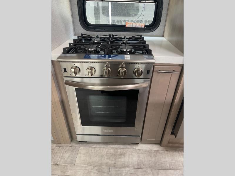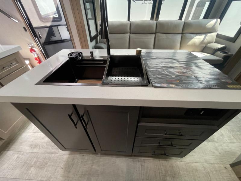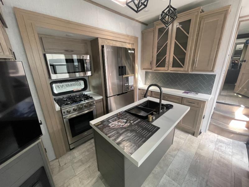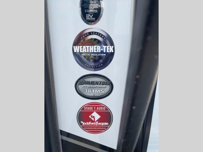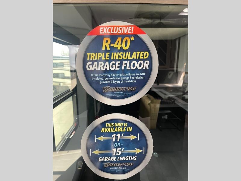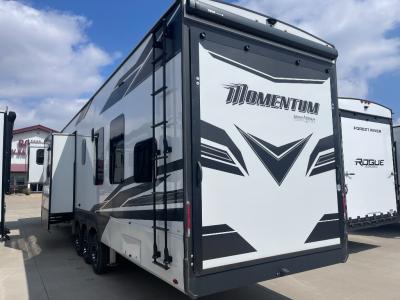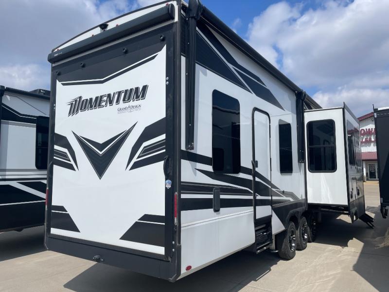 With any Momentum M-Class toy hauler by Grand Design, you will enjoy luxury at every turn! They have been constructed to a superior standard with a thermal roof design, triple insulated main floor and garage floor, and a Rail-Tite underbelly seal that will allow you to camp in all elements. Each model also features an 8' 5" wide body chassis with a wide rail design, no wheel wheels, and a dovetail entry for easier loading. The Stealth A/C system provides maximum cooling power, and the CRE3000 suspension system means you can enjoy a smooth tow each time. You will love the luxurious interior with a professional grade stainless steel cooktop, interior color changing LED accent lighting, a fiberglass shower with a glass door, and solid surface countertops.