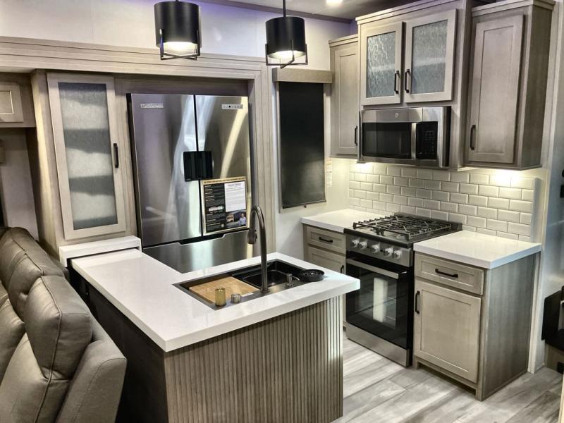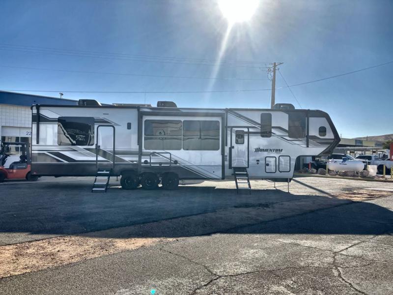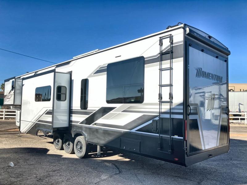 With any Momentum M-Class toy hauler by Grand Design, you will enjoy luxury at every turn! They have been constructed to a superior standard with a thermal roof design, triple insulated main floor and garage floor, and a Rail-Tite underbelly seal that will allow you to camp in all elements. Each model also features an 8' 5" wide body chassis with a wide rail design, no wheel wheels, and a dovetail entry for easier loading. The Stealth A/C system provides maximum cooling power, and the CRE3000 suspension system means you can enjoy a smooth tow each time. You will love the luxurious interior with a professional grade stainless steel cooktop, interior color changing LED accent lighting, a fiberglass shower with a glass door, and solid surface countertops.