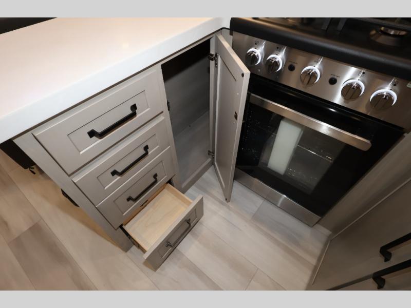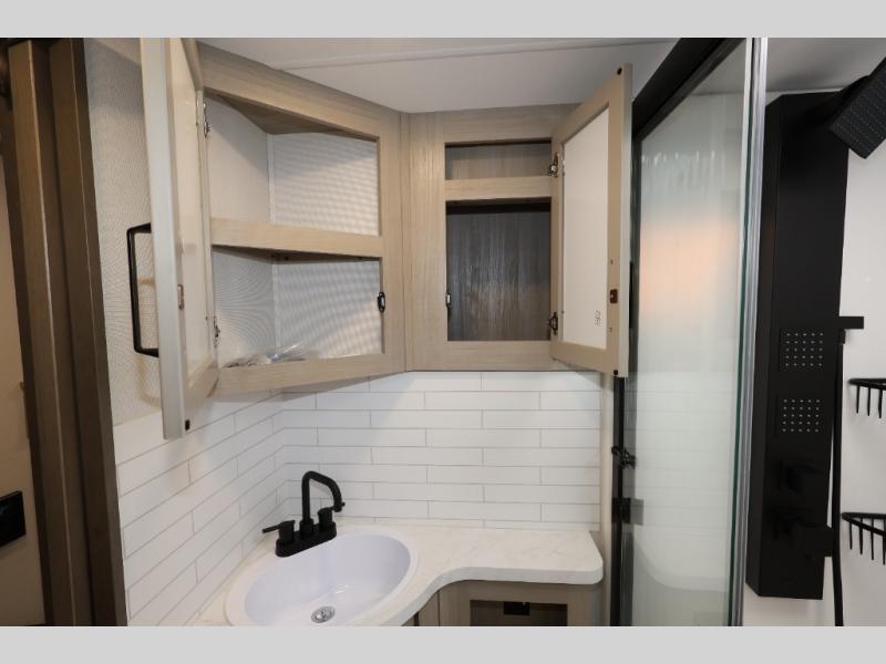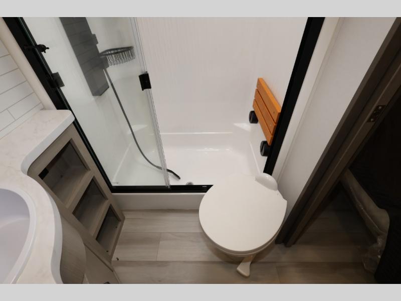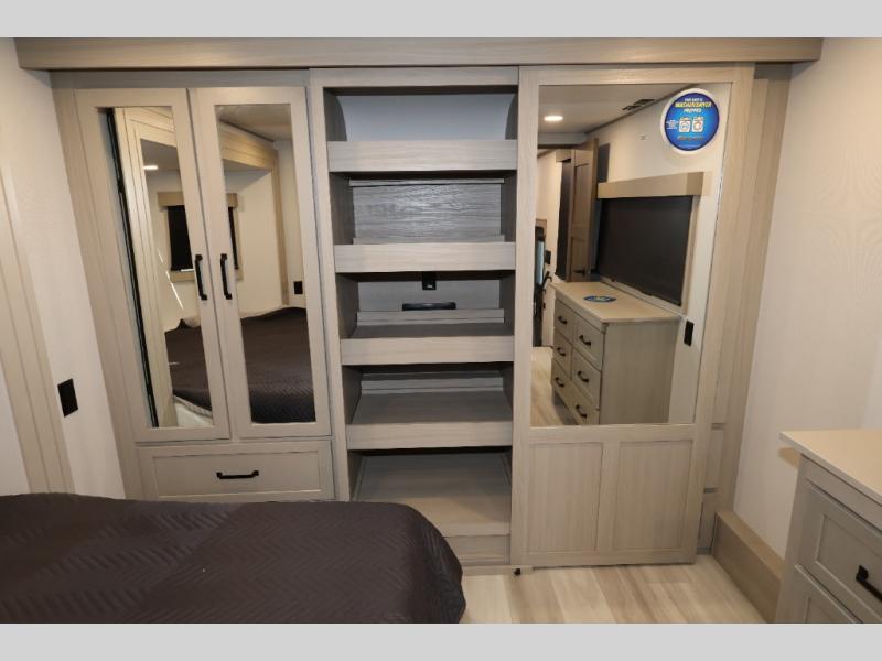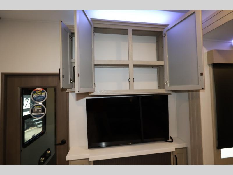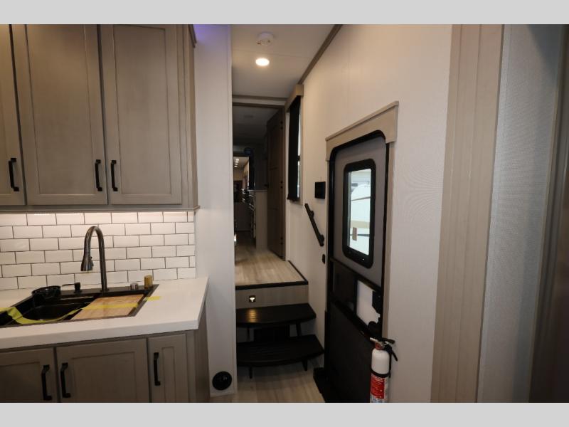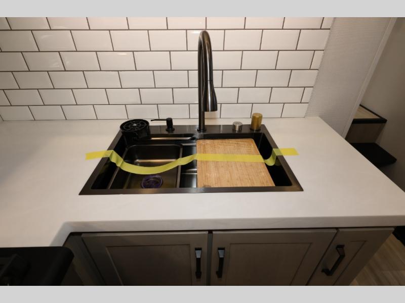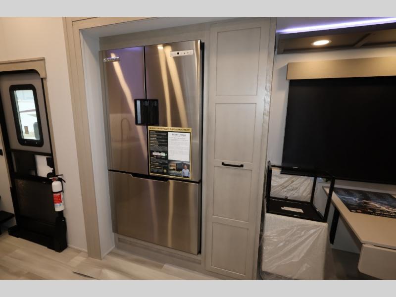 With any Momentum M-Class toy hauler by Grand Design, you will enjoy luxury at every turn! They have been constructed to a superior standard with a thermal roof design, triple insulated main floor and garage floor, and a Rail-Tite underbelly seal that will allow you to camp in all elements. Each model also features a, 8' 5" wide body chassis with a wide rail design, no wheel wheels, and a dovetail entry for easier loading. The Stealth A/C system provides maximum cooling power, and the CRE3000 suspension system means you can enjoy a smooth tow each time. You will love the luxurious interior with a professional grade stainless steel cooktop, interior color changing LED accent lighting, a fiberglass shower with a glass door, and solid surface countertops.