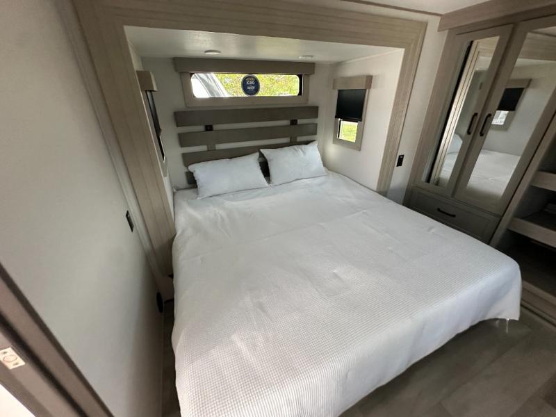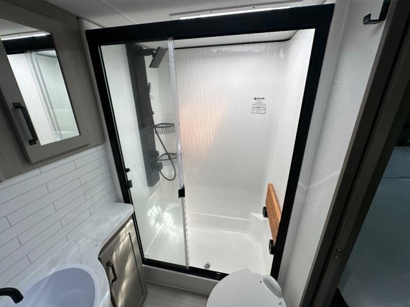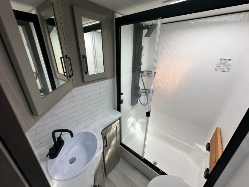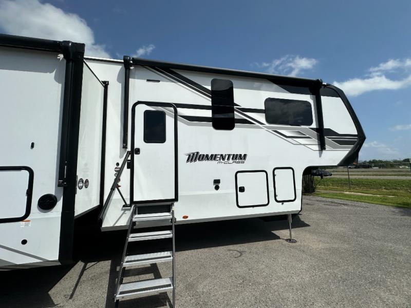 With any Momentum M-Class toy hauler by Grand Design, you will enjoy luxury at every turn! They have been constructed to a superior standard with a thermal roof design, triple insulated main floor and garage floor, and a Rail-Tite underbelly seal that will allow you to camp in all elements. Each model also features a, 8' 5" wide body chassis with a wide rail design, no wheel wheels, and a dovetail entry for easier loading. The Stealth A/C system provides maximum cooling power, and the CRE3000 suspension system means you can enjoy a smooth tow each time. You will love the luxurious interior with a professional grade stainless steel cooktop, interior color changing LED accent lighting, a fiberglass shower with a glass door, and solid surface countertops.