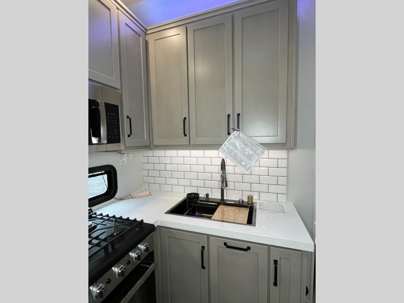 With any Momentum M-Class toy hauler by Grand Design, you will enjoy luxury at every turn! They have been constructed to a superior standard with a thermal roof design, triple insulated main floor and garage floor, and a Rail-Tite underbelly seal that will allow you to camp in all elements. Each model also features a, 8' 5" wide body chassis with a wide rail design, no wheel wheels, and a dovetail entry for easier loading. The Stealth A/C system provides maximum cooling power, and the CRE3000 suspension system means you can enjoy a smooth tow each time. You will love the luxurious interior with a professional grade stainless steel cooktop, interior color changing LED accent lighting, a fiberglass shower with a glass door, and solid surface countertops.
