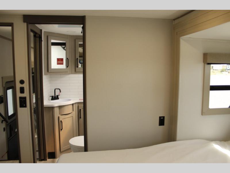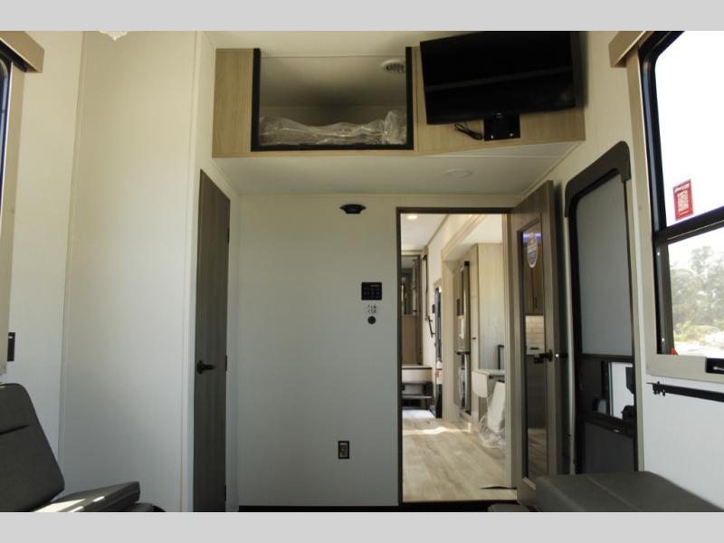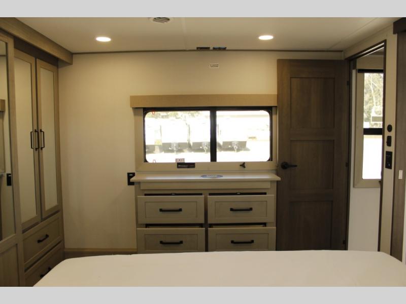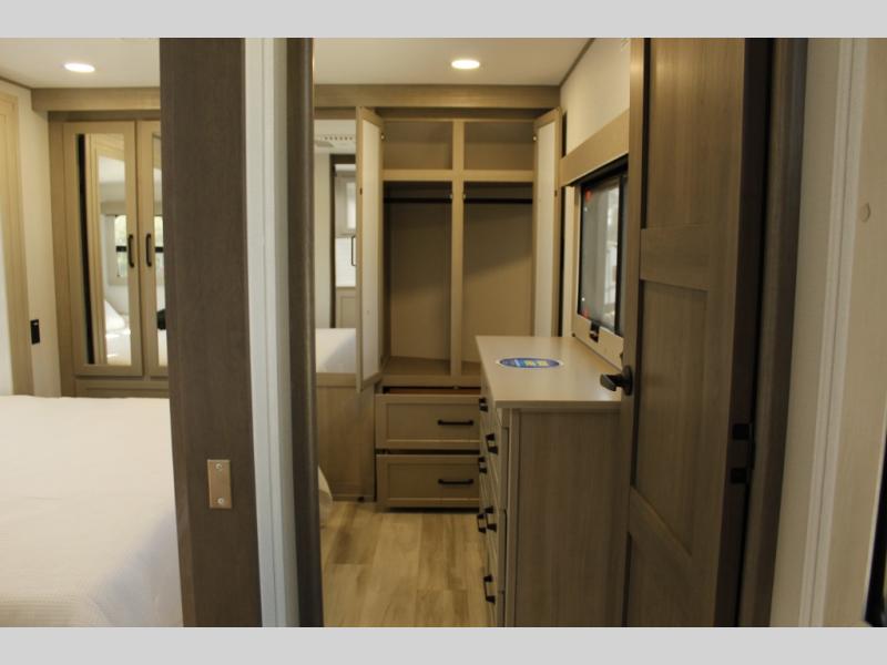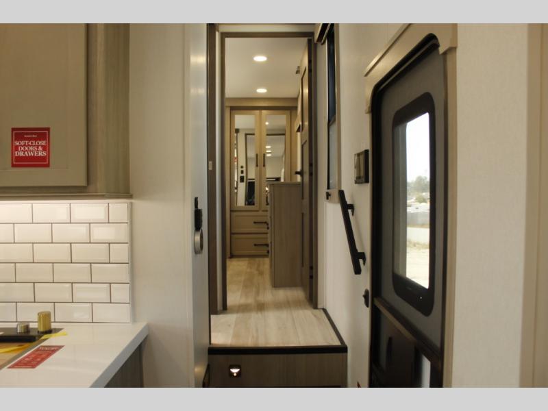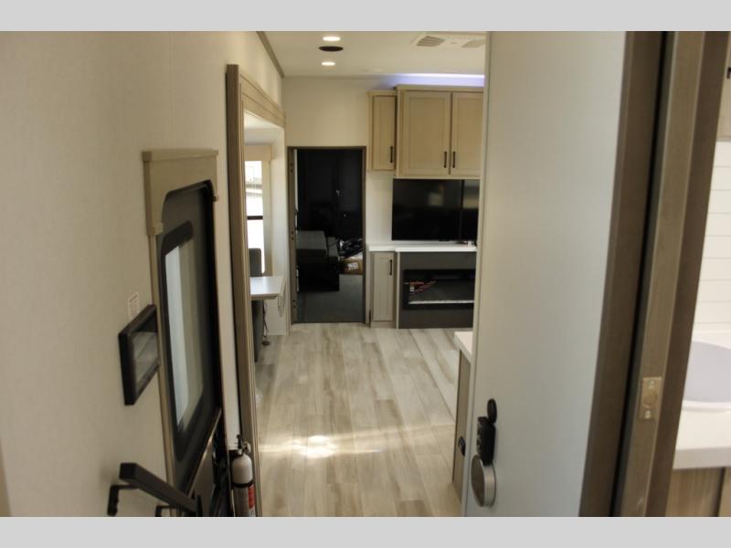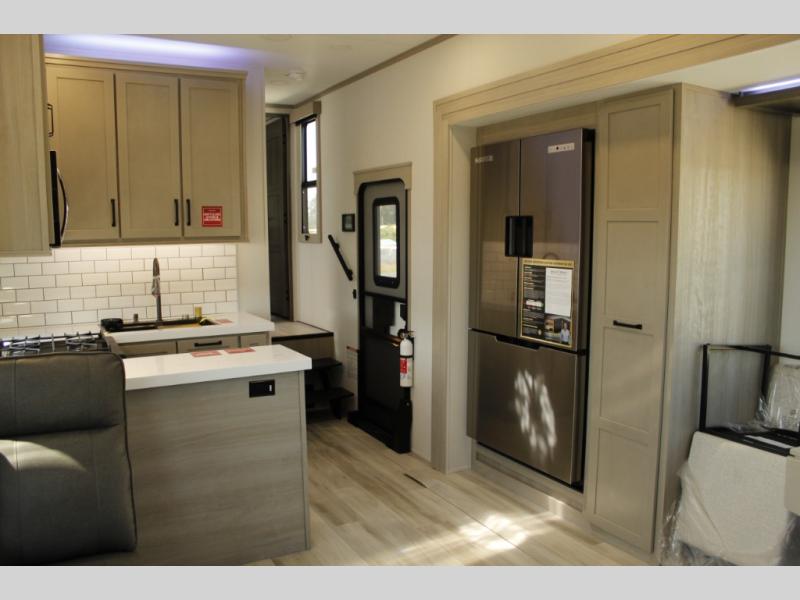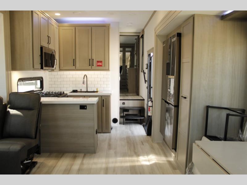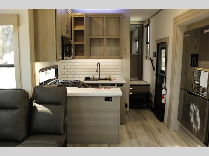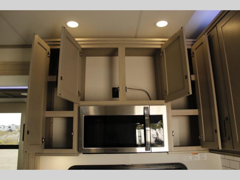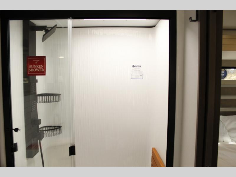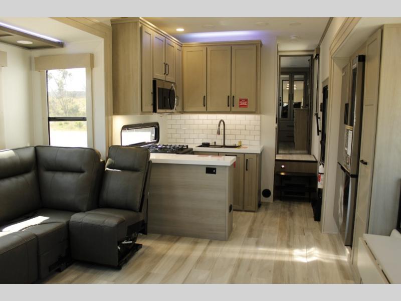 With any Momentum M-Class toy hauler by Grand Design, you will enjoy luxury at every turn! They have been constructed to a superior standard with a thermal roof design, triple insulated main floor and garage floor, and a Rail-Tite underbelly seal that will allow you to camp in all elements. Each model also features a, 8' 5" wide body chassis with a wide rail design, no wheel wheels, and a dovetail entry for easier loading. The Stealth A/C system provides maximum cooling power, and the CRE3000 suspension system means you can enjoy a smooth tow each time. You will love the luxurious interior with a professional grade stainless steel cooktop, interior color changing LED accent lighting, a fiberglass shower with a glass door, and solid surface countertops.