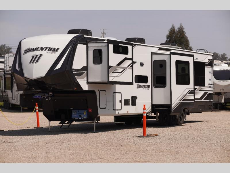 Grand Design Momentum M-Class 414M toy hauler fifth wheel highlights: