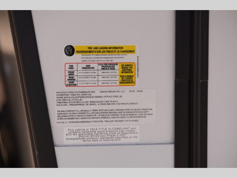 New 2025 Grand Design Momentum M-Class 414M Toy Hauler Fifth Wheel