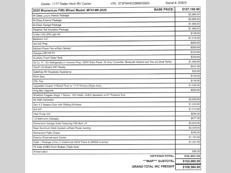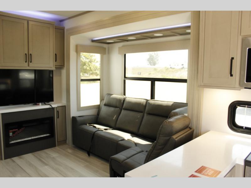 SALE PRICE INCLUDES UPGRADED 1,060W SOLAR WITH 2 LITHIUM BATTERIES. DELUXE AWNING TOPPERS ON ALL SLIDES. PLUS THE MEGA PLATINUM RV STARTER KIT!