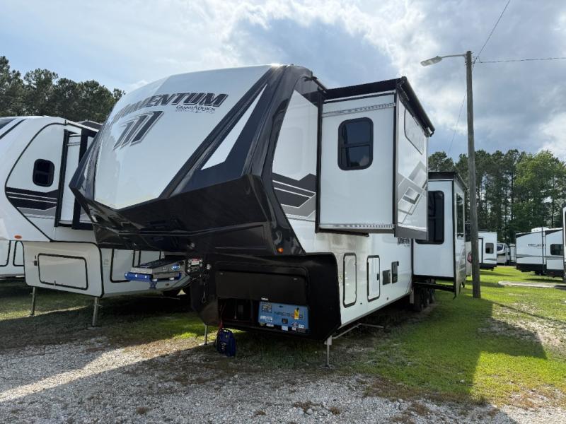 Grand Design Momentum M-Class 414M toy hauler fifth wheel highlights: