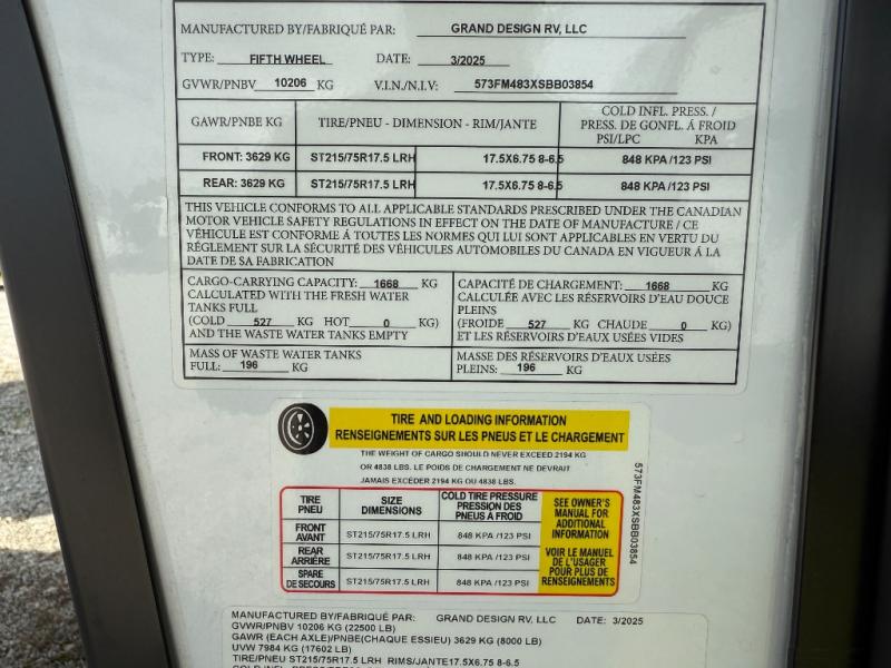 New 2025 Grand Design Momentum M-Class 414M Toy Hauler Fifth Wheel