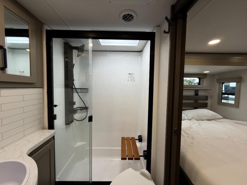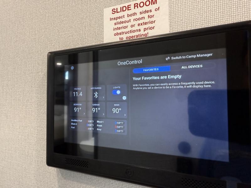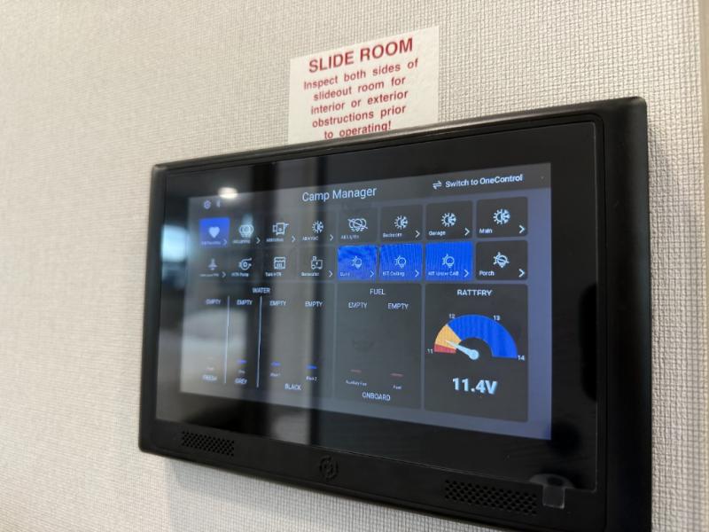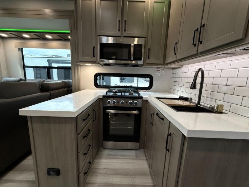 With any Momentum M-Class toy hauler by Grand Design, you will enjoy luxury at every turn! They have been constructed to a superior standard with a thermal roof design, triple insulated main floor and garage floor, and a Rail-Tite underbelly seal that will allow you to camp in all elements. Each model also features a, 8' 5" wide body chassis with a wide rail design, no wheel wheels, and a dovetail entry for easier loading. The Stealth A/C system provides maximum cooling power, and the CRE3000 suspension system means you can enjoy a smooth tow each time. You will love the luxurious interior with a professional grade stainless steel cooktop, interior color changing LED accent lighting, a fiberglass shower with a glass door, and solid surface countertops.
