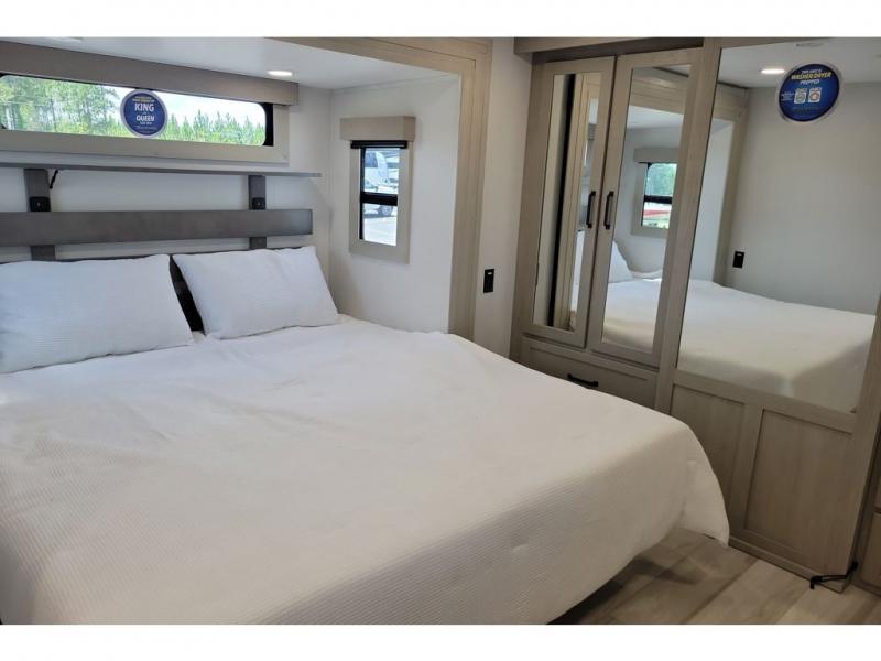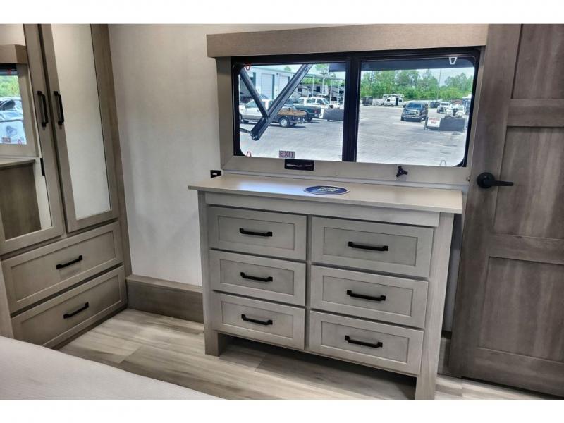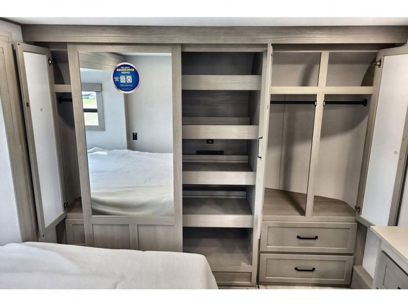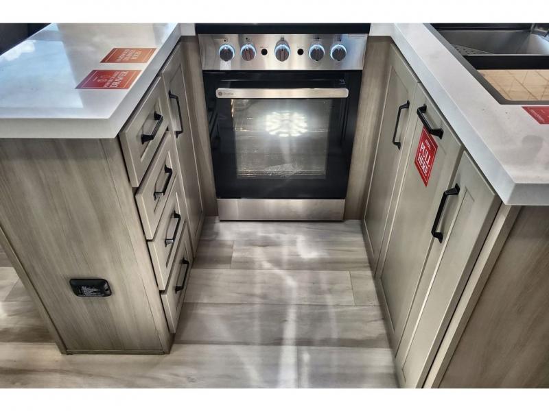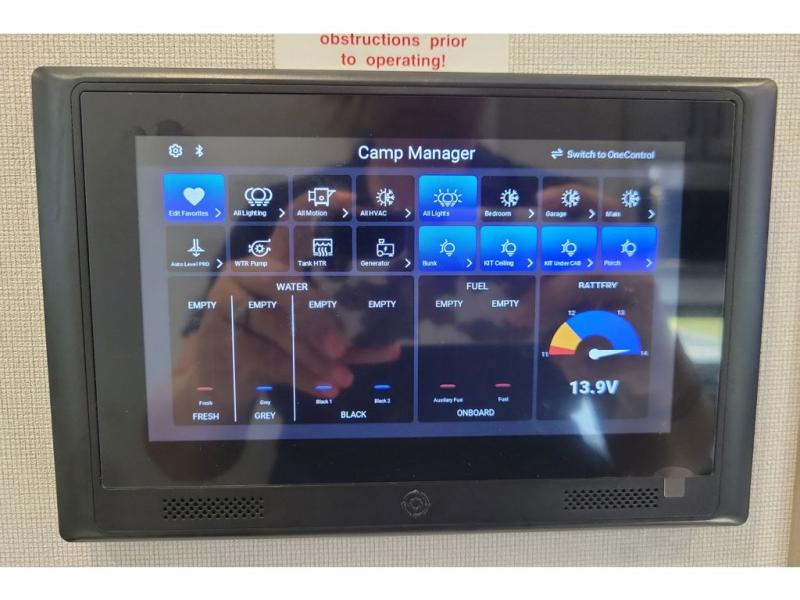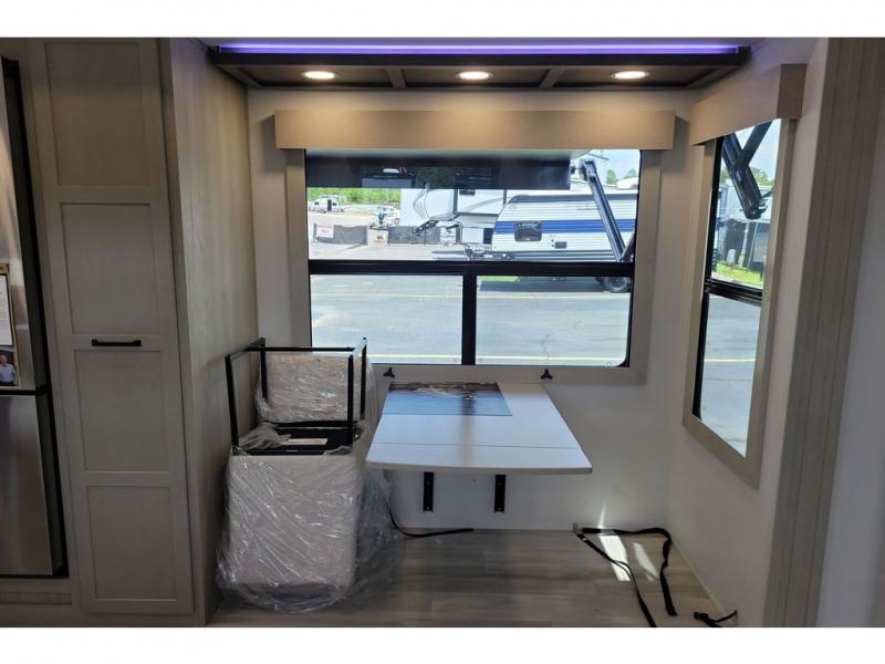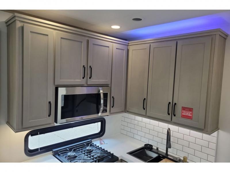 With any Momentum M-Class toy hauler by Grand Design, you will enjoy luxury at every turn! They have been constructed to a superior standard with a thermal roof design, triple insulated main floor and garage floor, and a Rail-Tite underbelly seal that will allow you to camp in all elements. Each model also features a, 8' 5" wide body chassis with a wide rail design, no wheel wheels, and a dovetail entry for easier loading. The Stealth A/C system provides maximum cooling power, and the CRE3000 suspension system means you can enjoy a smooth tow each time. You will love the luxurious interior with a professional grade stainless steel cooktop, interior color changing LED accent lighting, a fiberglass shower with a glass door, and solid surface countertops.